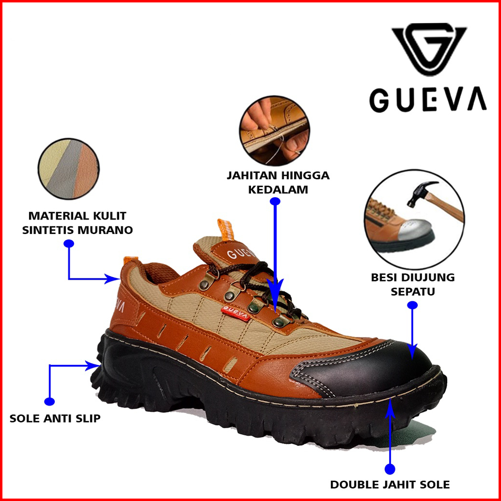 Gueva012 Sepatu Pria Ujung Besi Original 100 Untuk Pria Kerja Proyek Anti Air Size 39-43