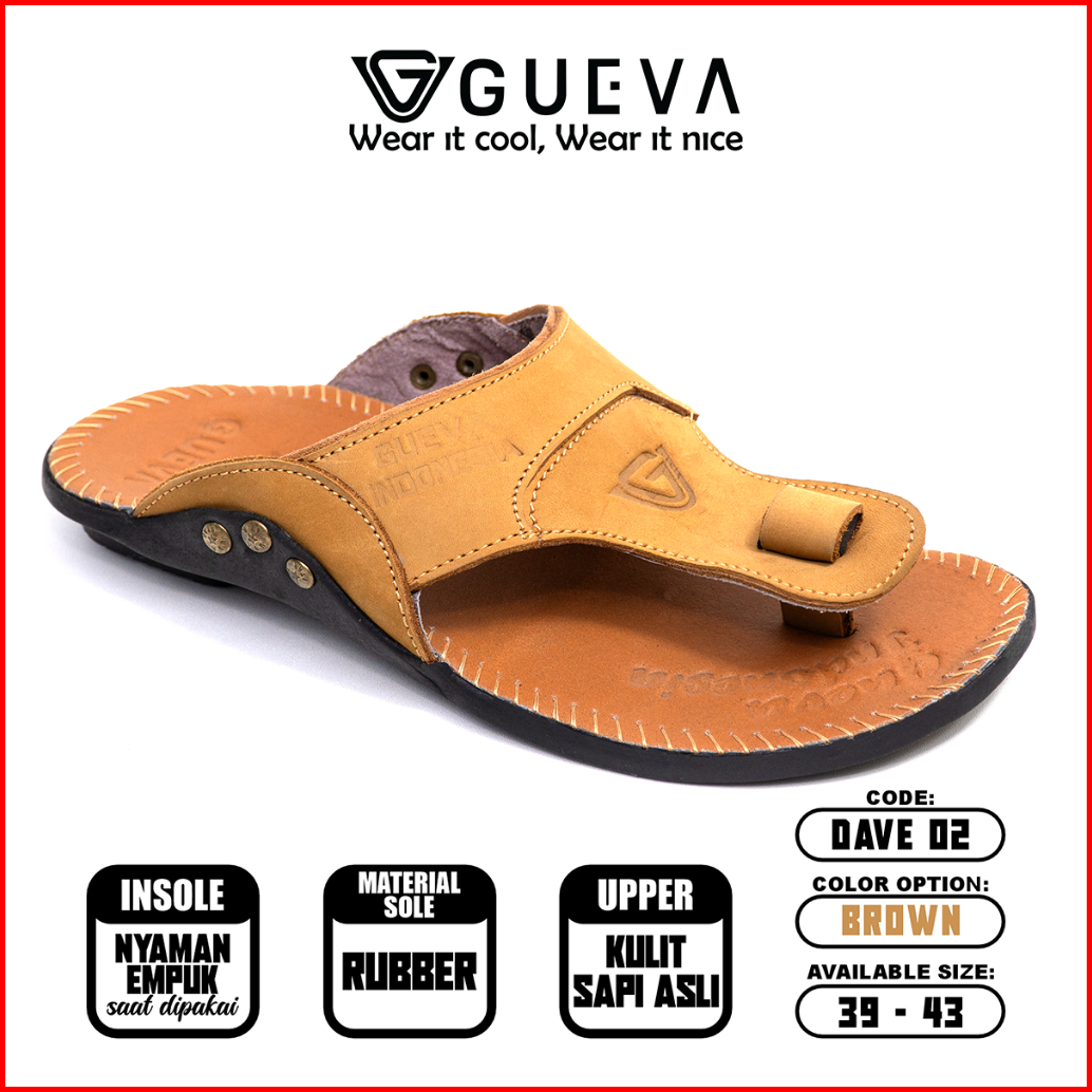 Gueva Sandal Pria Jepit Dave Series 2 Sendal Japit Kulit Sapi Asli Size 38-43