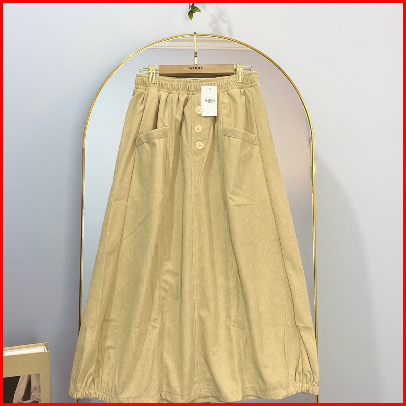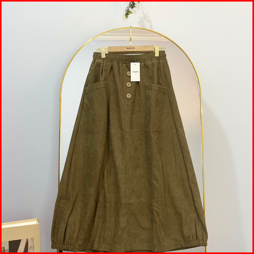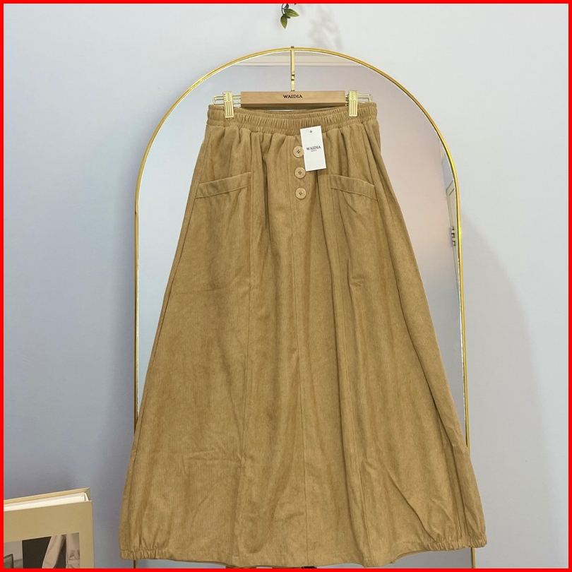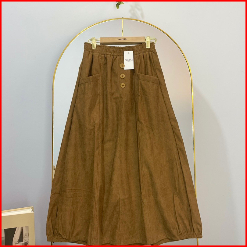 Waidia - Zeya Skirt Rok Corduroy Rok Kadorai Rok Kancing Midi Skirt