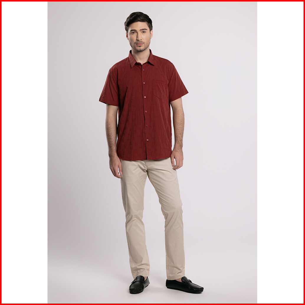 Moc - Kemeja Lengan Pendek Riley - Maroon