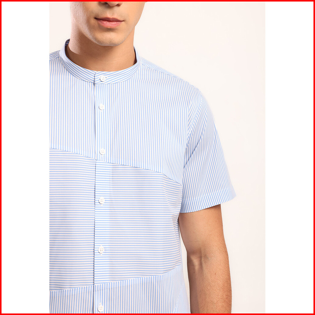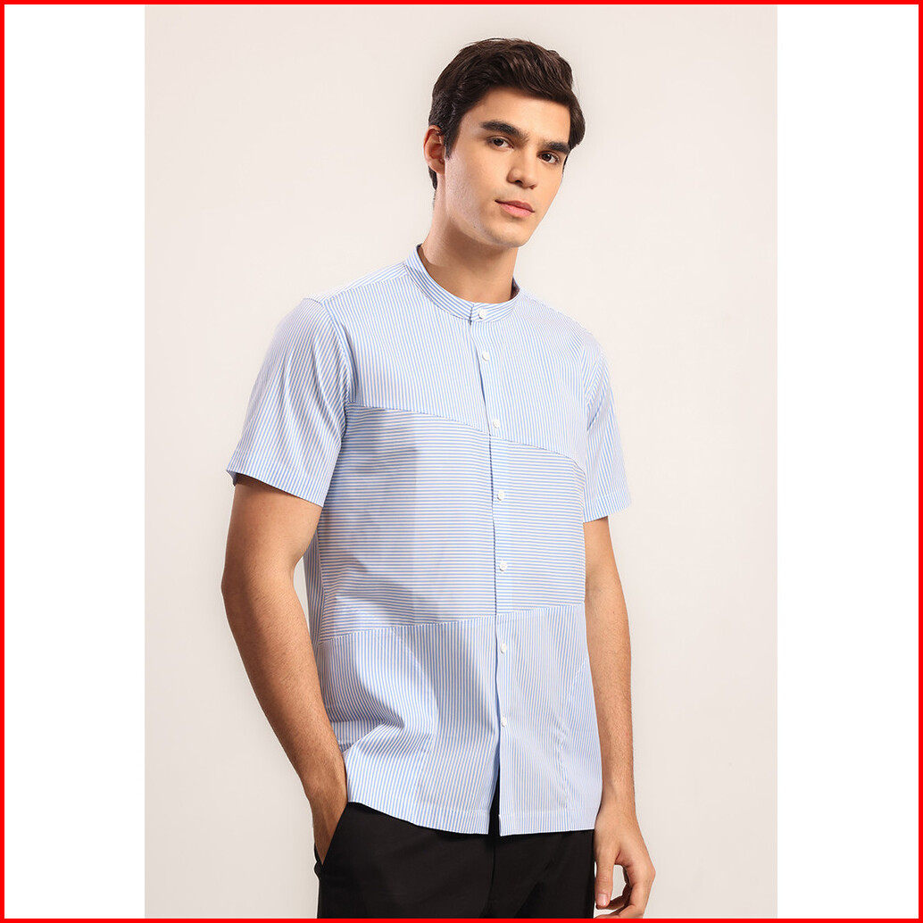 Moc - Kemeja Shanghai Lengan Pendek Pria Malik - Light Blue