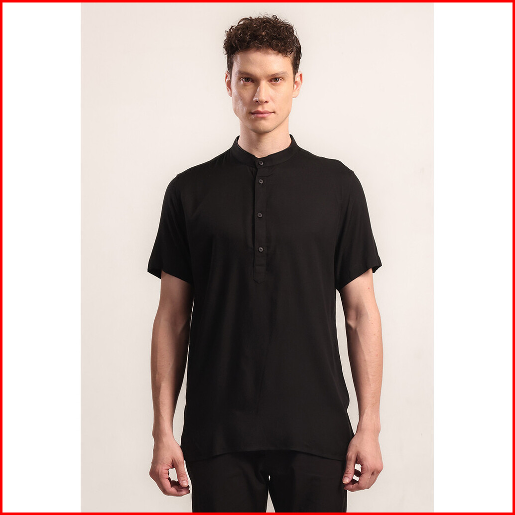 Moc Kemeja Koko Lengan Pendek Pria Javier - Black
