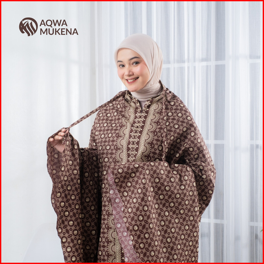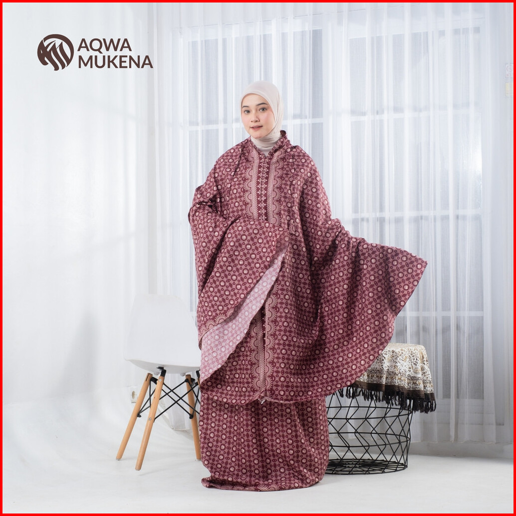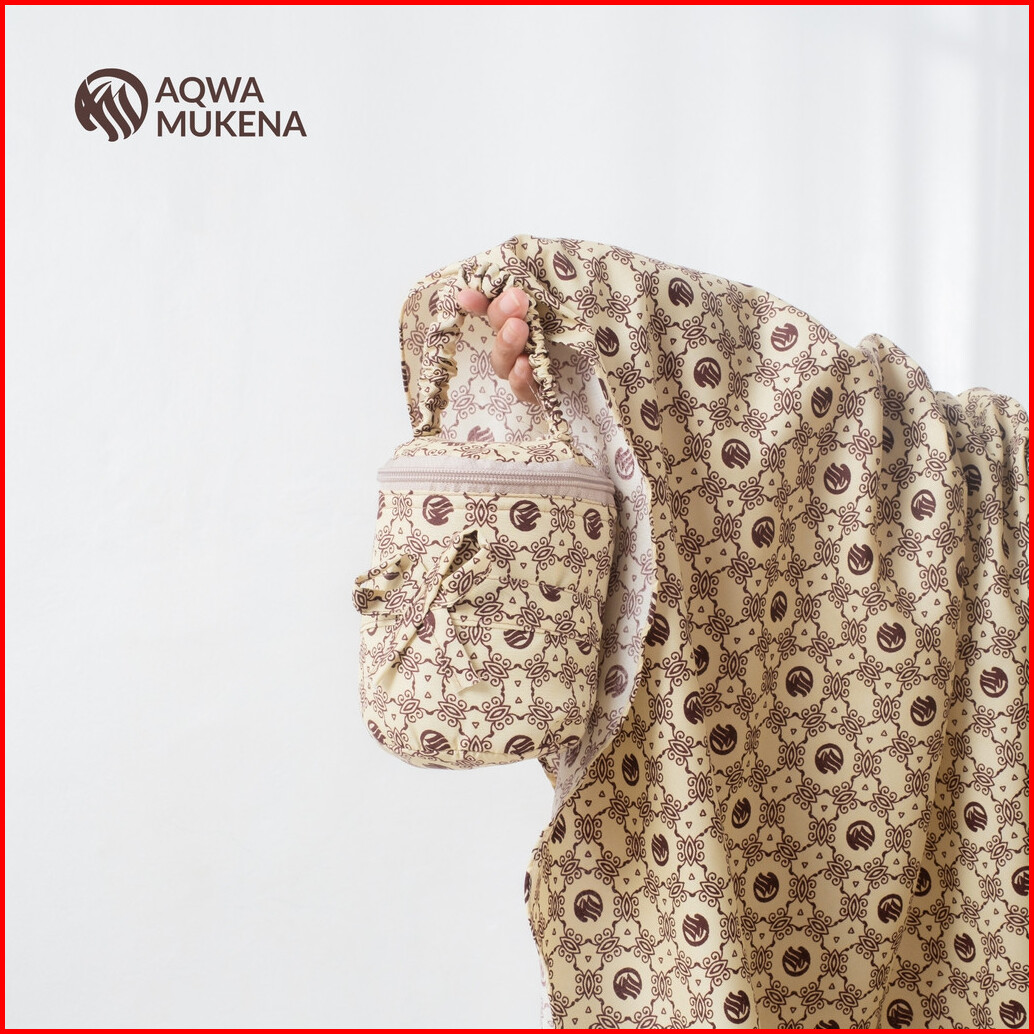 Aqwa - Mukena Halima Monogram Series Mukena Travel 2in1 Resleting Dagu Katun Premium Motif Mukena Mini Pouch Daily Motif