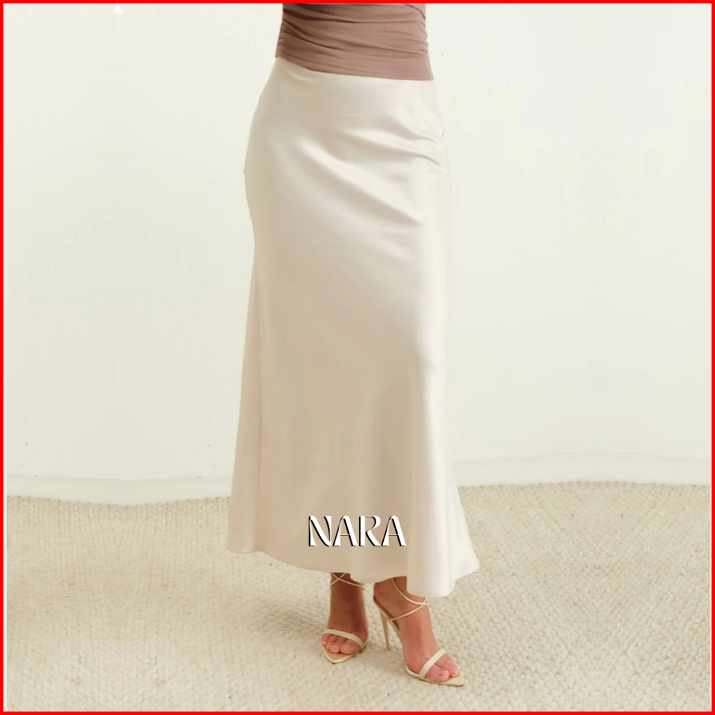 Nara - Rok Satin Skirt Wanita Silk Premium Panjang Midi To Maxi Bawahan Wanita Korean Satin Skirt