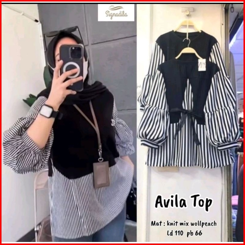 Avila Top Salur 1cm Nismara Blouse Wanita Busana Wanita Pakaian Wanita Atasan Kantor Baju Kantor Kemeja Salur Kemeja Kan