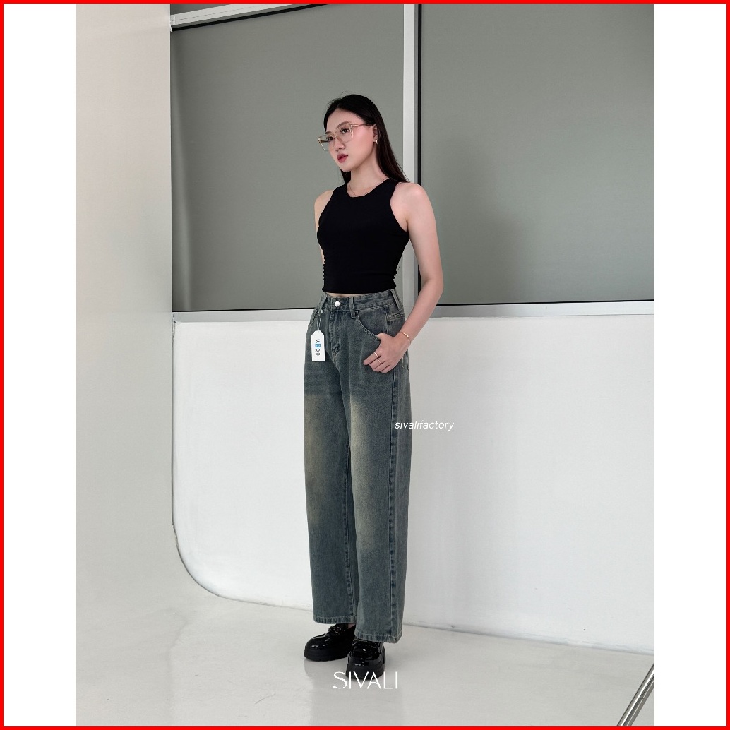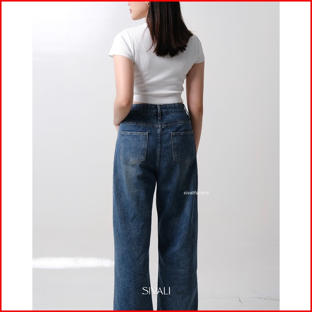 Sivali Billie Petite Jeans - Celana Jeans Petite Wanita Highwaist Wide Leg Cut Panjang Korea Loose Premium Quality S-xl