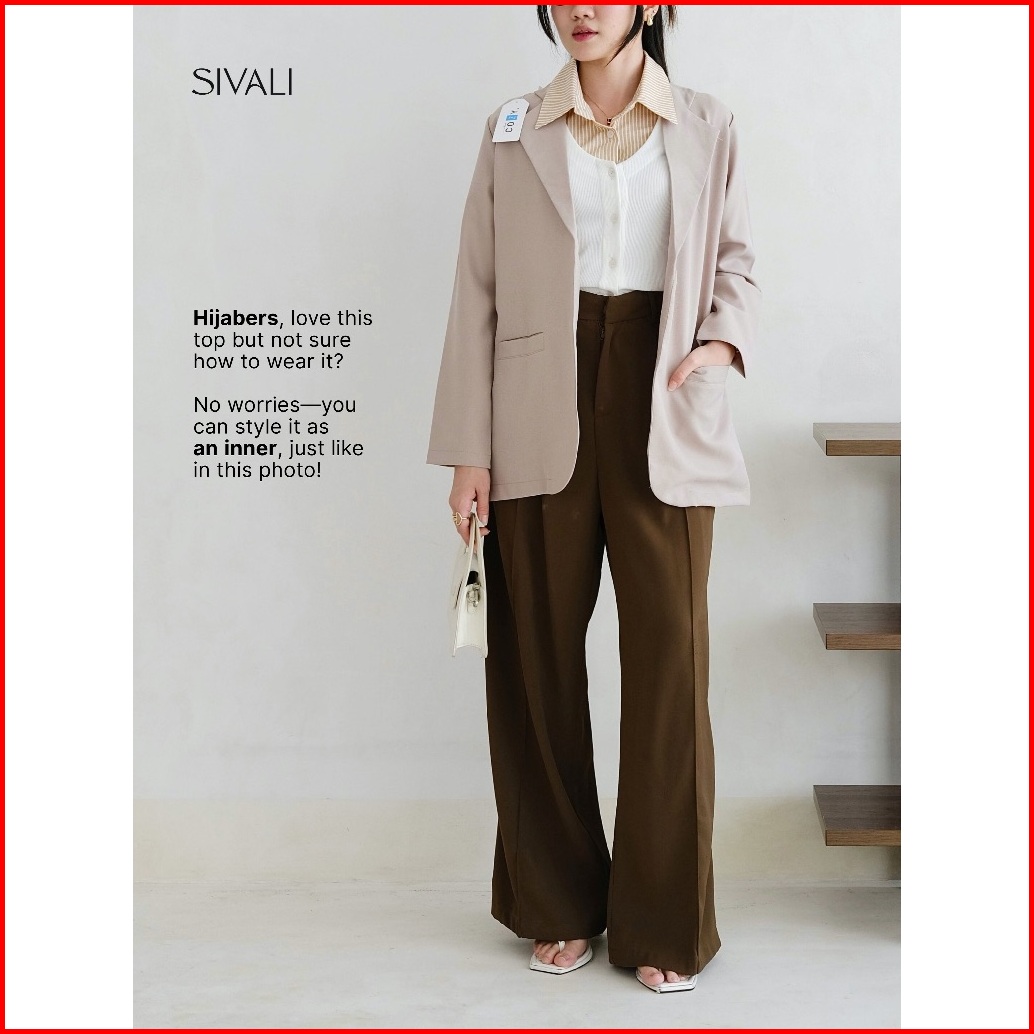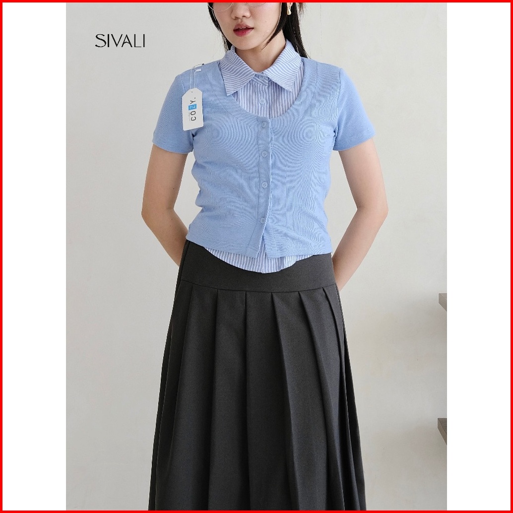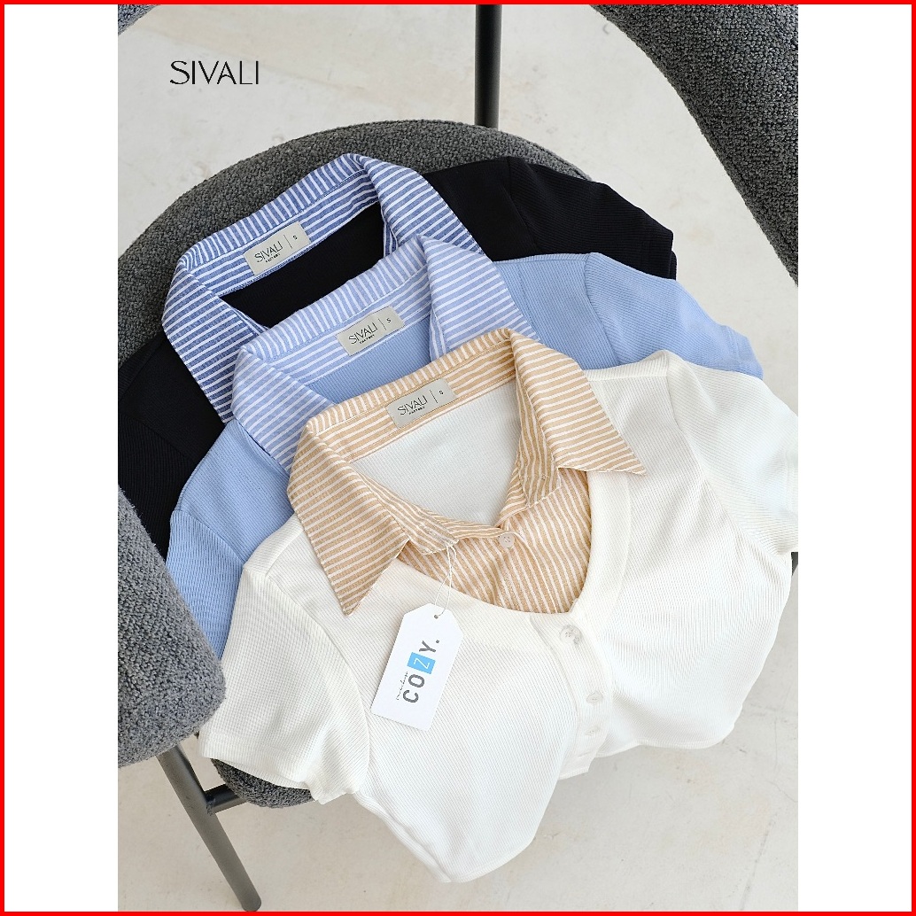 Sivali Cooper Knit Combi Shortsleeve - Stripe Layer Shirt - Atasan Wanita Kemeja Lengan Pendek 084