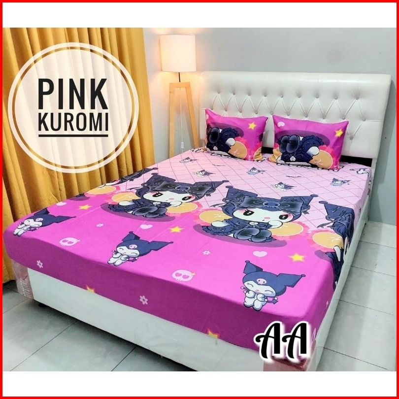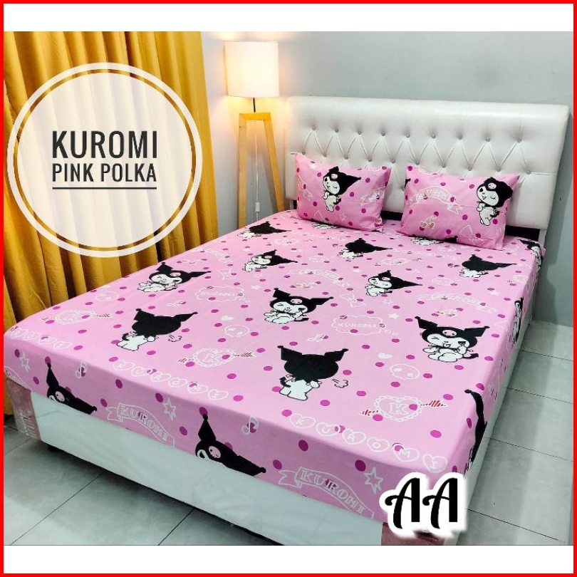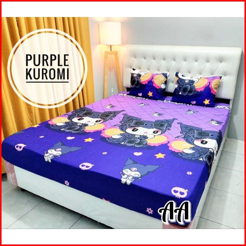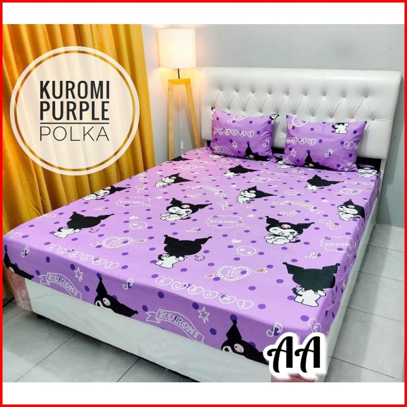 Sprei Kuromi Motif Polka Pink Purple Adem
