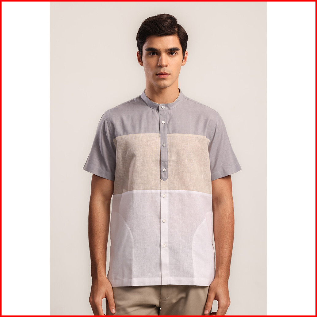 Moc Kemeja Shanghai Lengan Pendek Pria Fateh - Grey