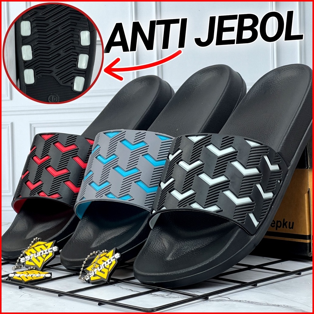 Estunice Sandal Slop Pria Slip On Slide Selop Karet - Virgo Hitam