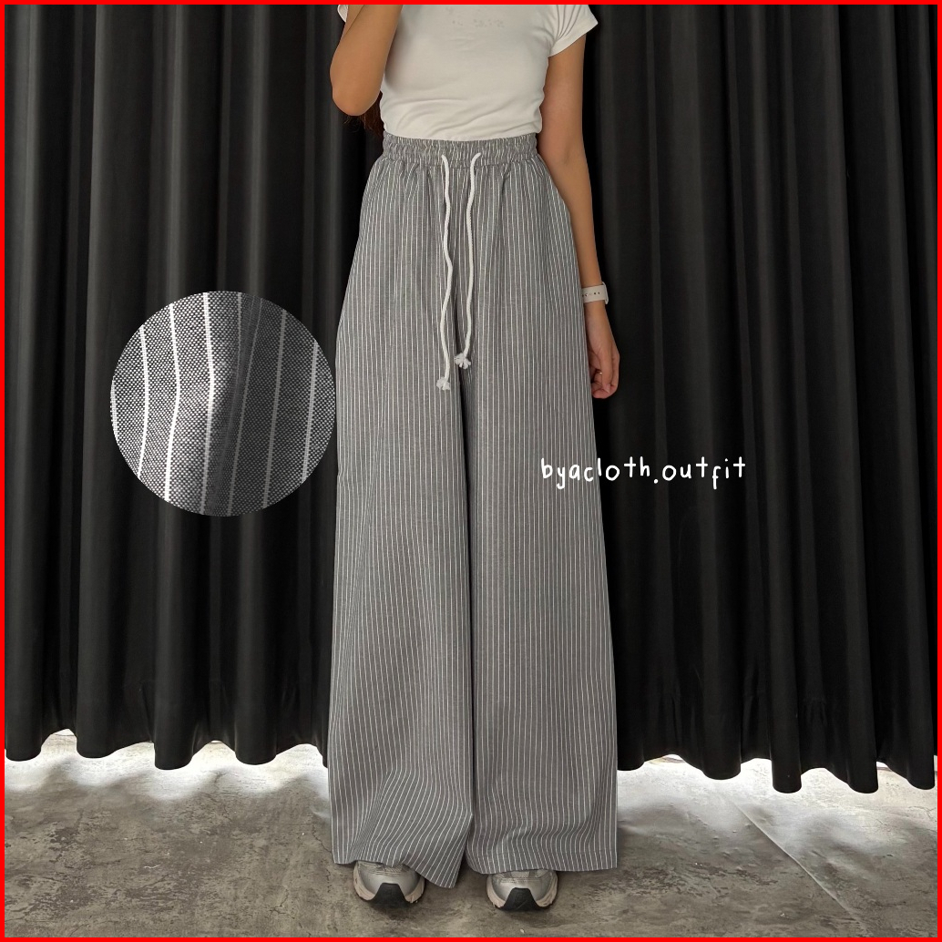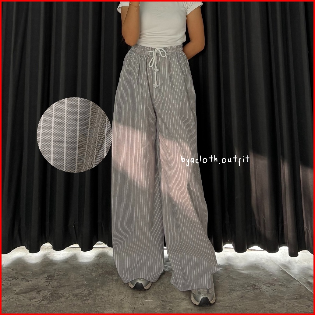 Byacloth - Everyday Pants Cotton - Celana Panjang Wanita Baggy Kantor Kuliah Motif Garis Kulot Pinstripe