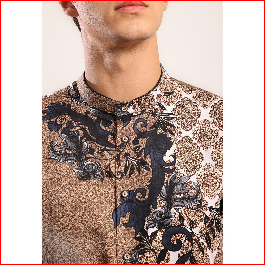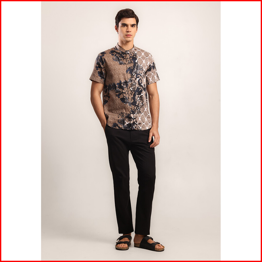 Moc - Kemeja Batik Shanghai Lengan Pendek Pria Hasbi - Beige