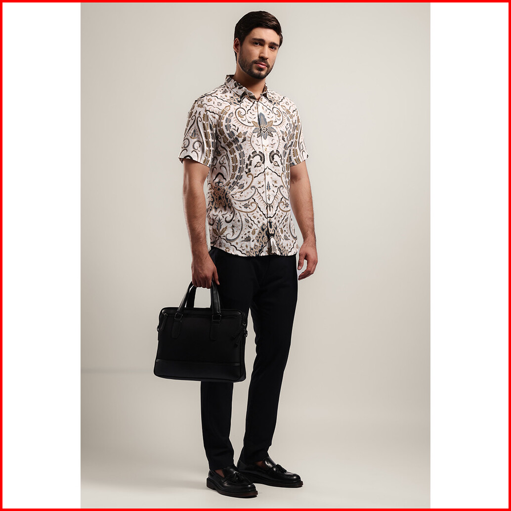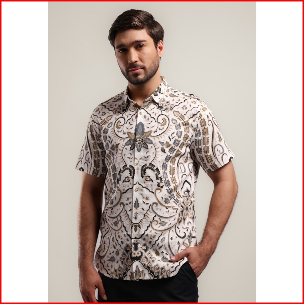 Moc Kemeja Batik Lengan Pendek Pria Kradev - White