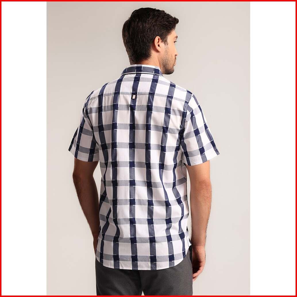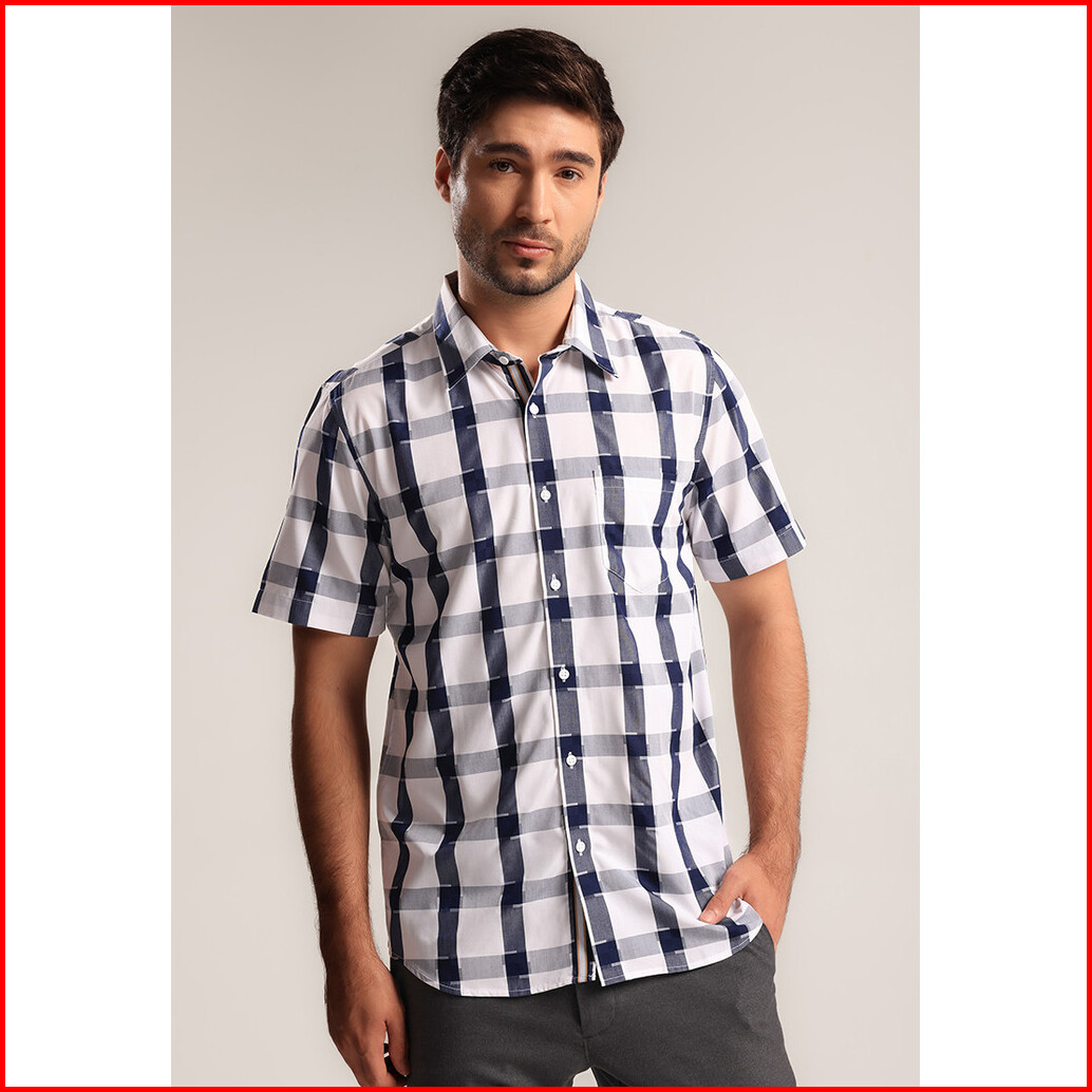 Moc - Kemeja Kotak-kotak Pria Lengan Pendek Zefta - Navy