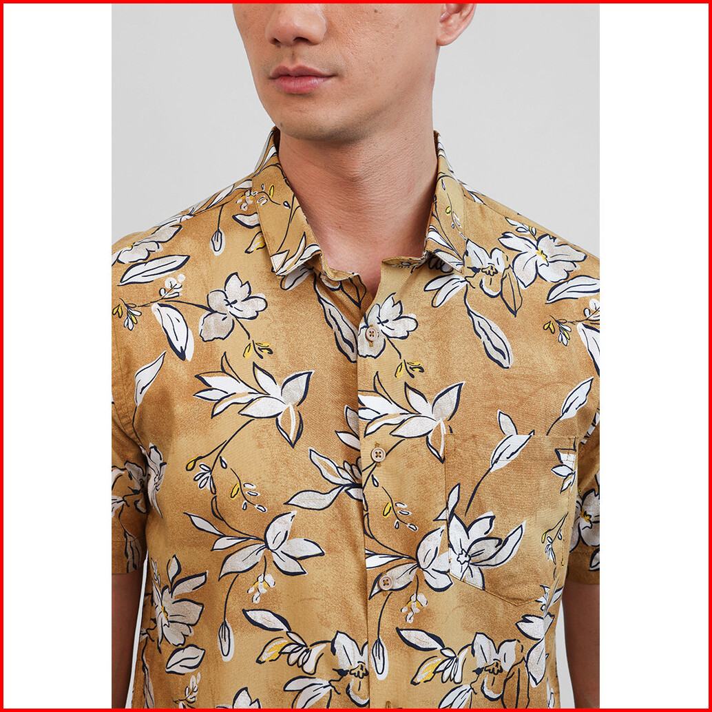 Moc Kemeja Lengan Pendek Pria Nicho - Mustard