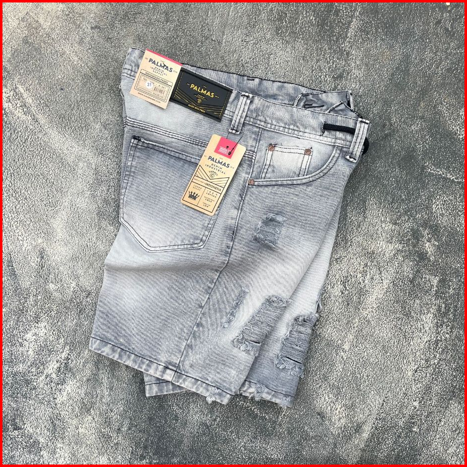 Celana Pendek Jeans Sobek Sobek Pria Cowok Dewasa Warna Hitam Snow Size 28 29 30 31 32 33 Robek