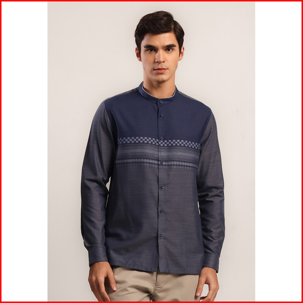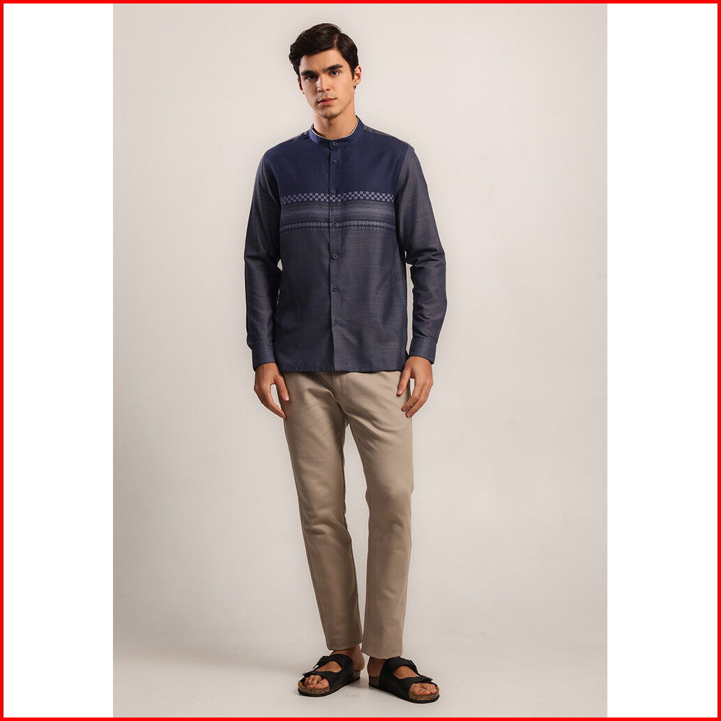 Moc - Kemeja Koko Lengan Panjang Pria Azraq - Navy