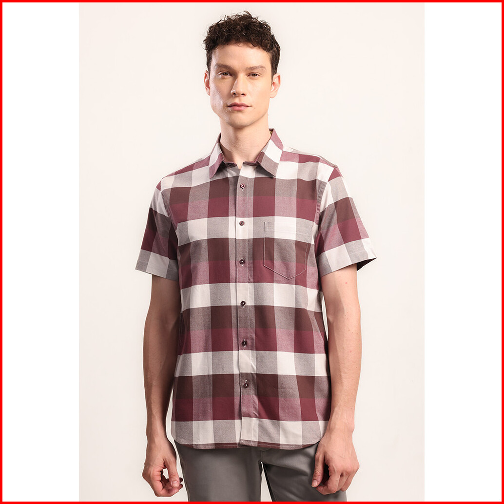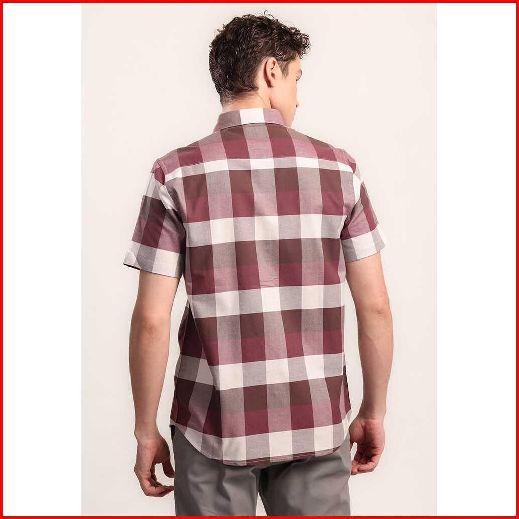 Moc - Kemeja Kotak-kotak Pria Lengan Pendek Daniel - Maroon