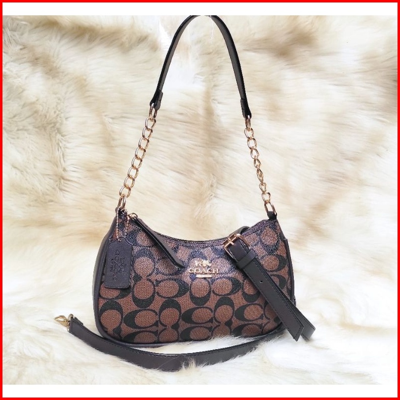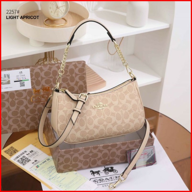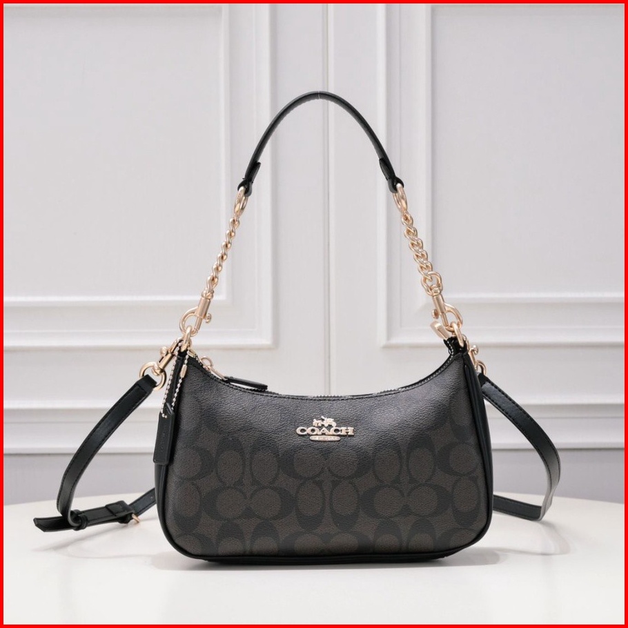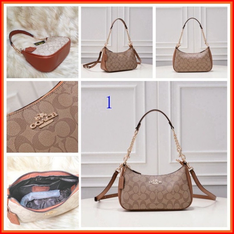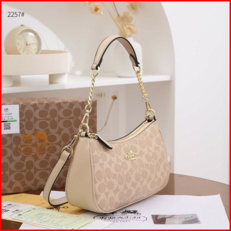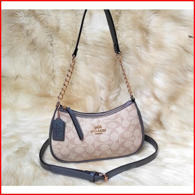 Baru Tas Wanita C0ach Teri Shoulder Bag Canvas - Khaki