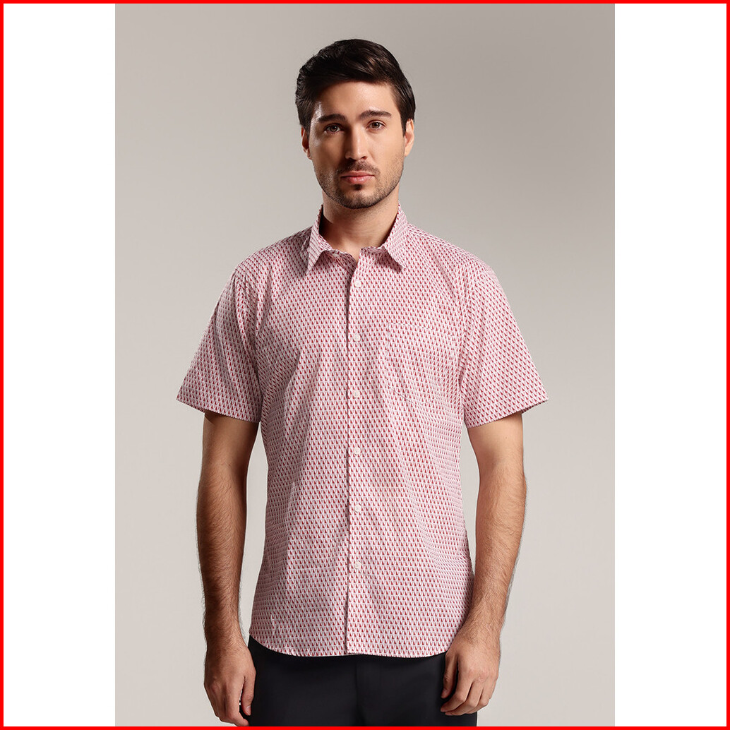 Moc - Kemeja Motif Lengan Pendek Pria Lorenzo - Light Pink