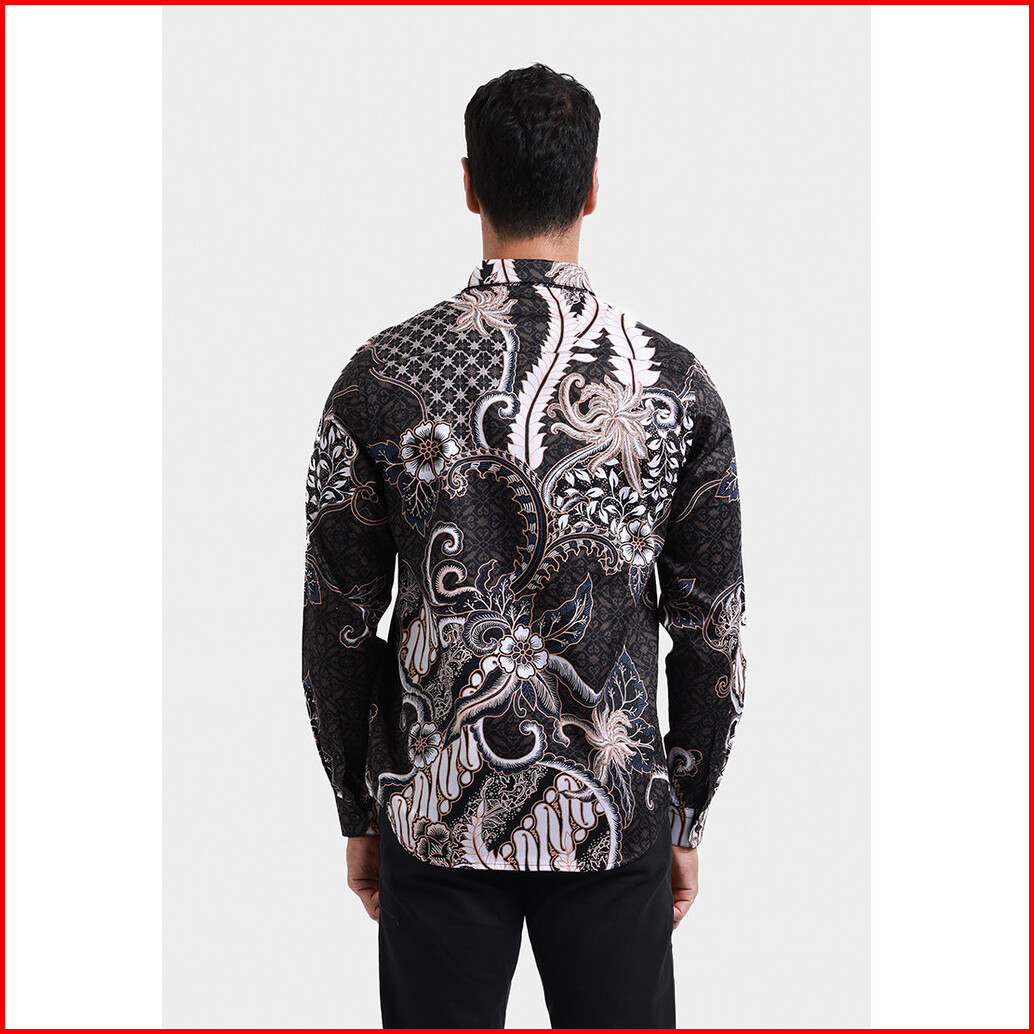Moc Kemeja Batik Lengan Panjang Pria Palopo - Black