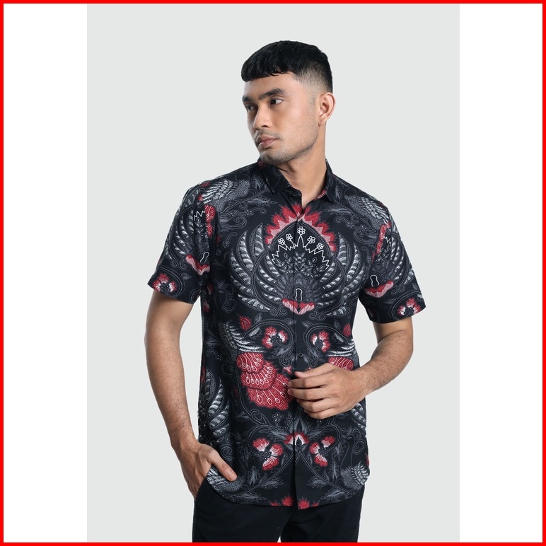 Moc Kemeja Batik Lengan Pendek Pria Enzi-black