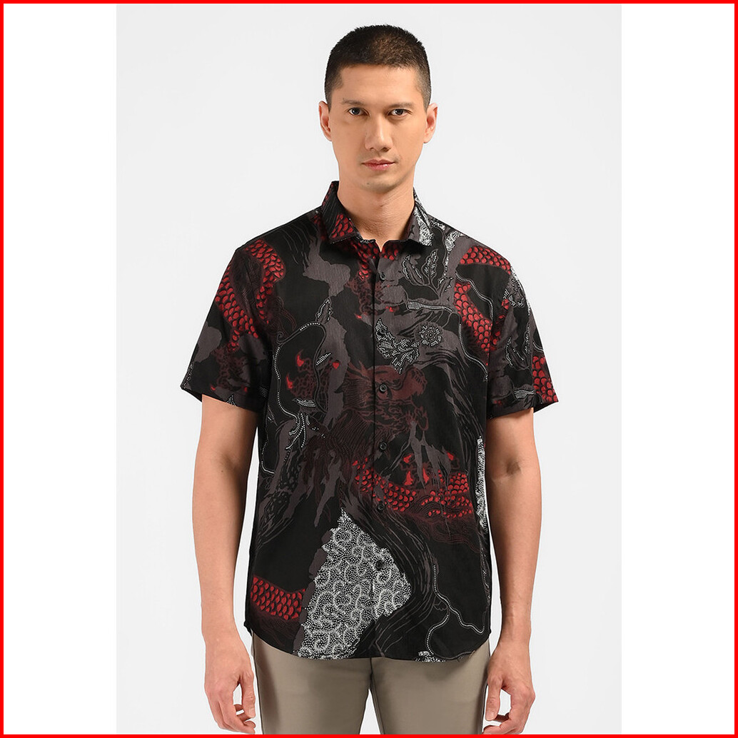 Moc Kemeja Batik Lengan Pendek Pria Bhaja-black