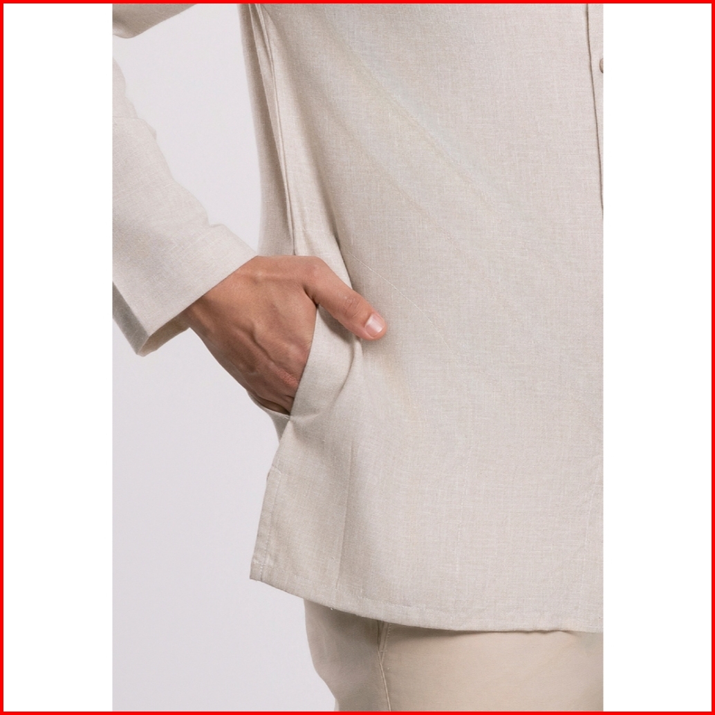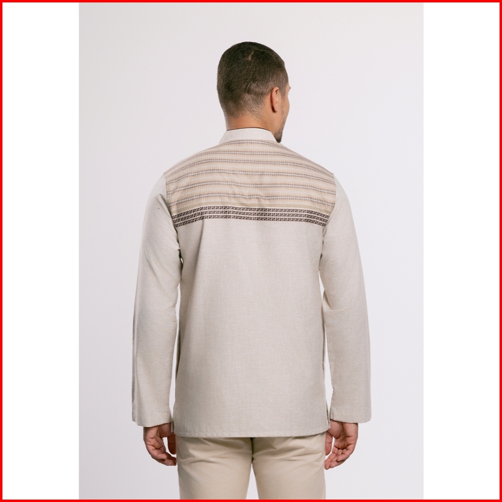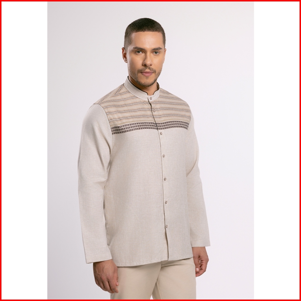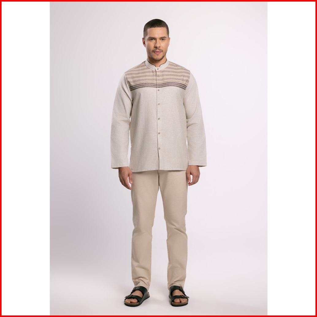 Men S Top By Moc Kemeja Koko Lengan Panjang Pria Damar - Khaki
