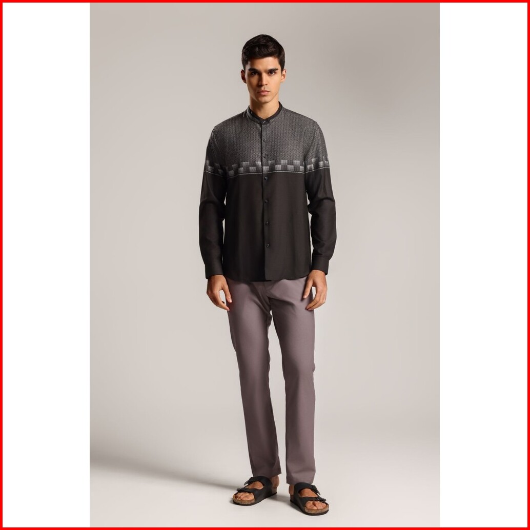 Moc Kemeja Koko Lengan Panjang Pria Maurer - Black