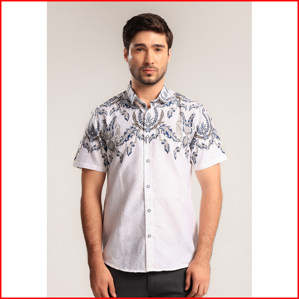 Moc Kemeja Batik Lengan Pendek Pria Cendagah - White