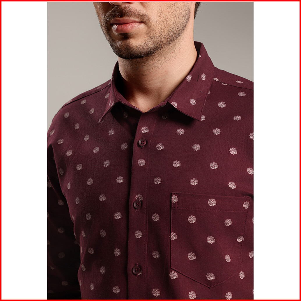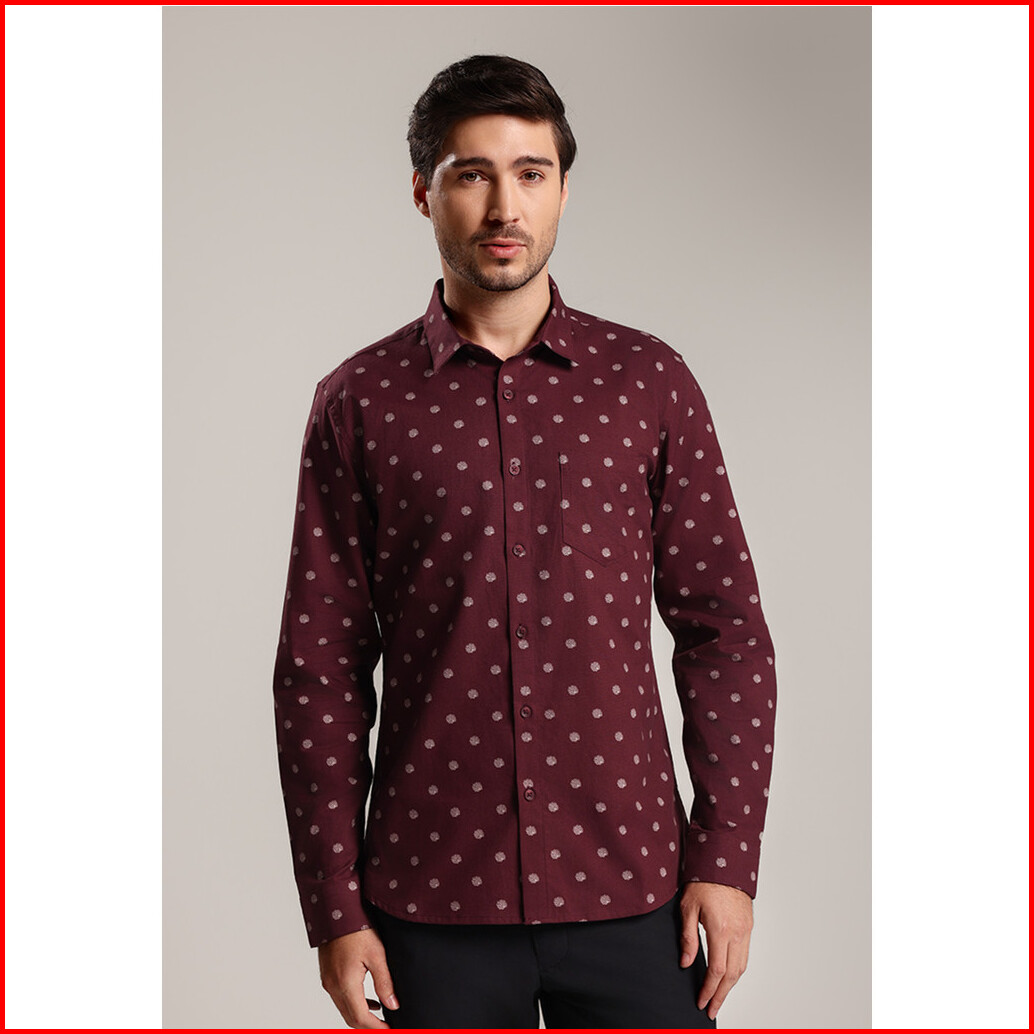 Moc - Kemeja Motif Lengan Panjang Pria Tyler - Maroon