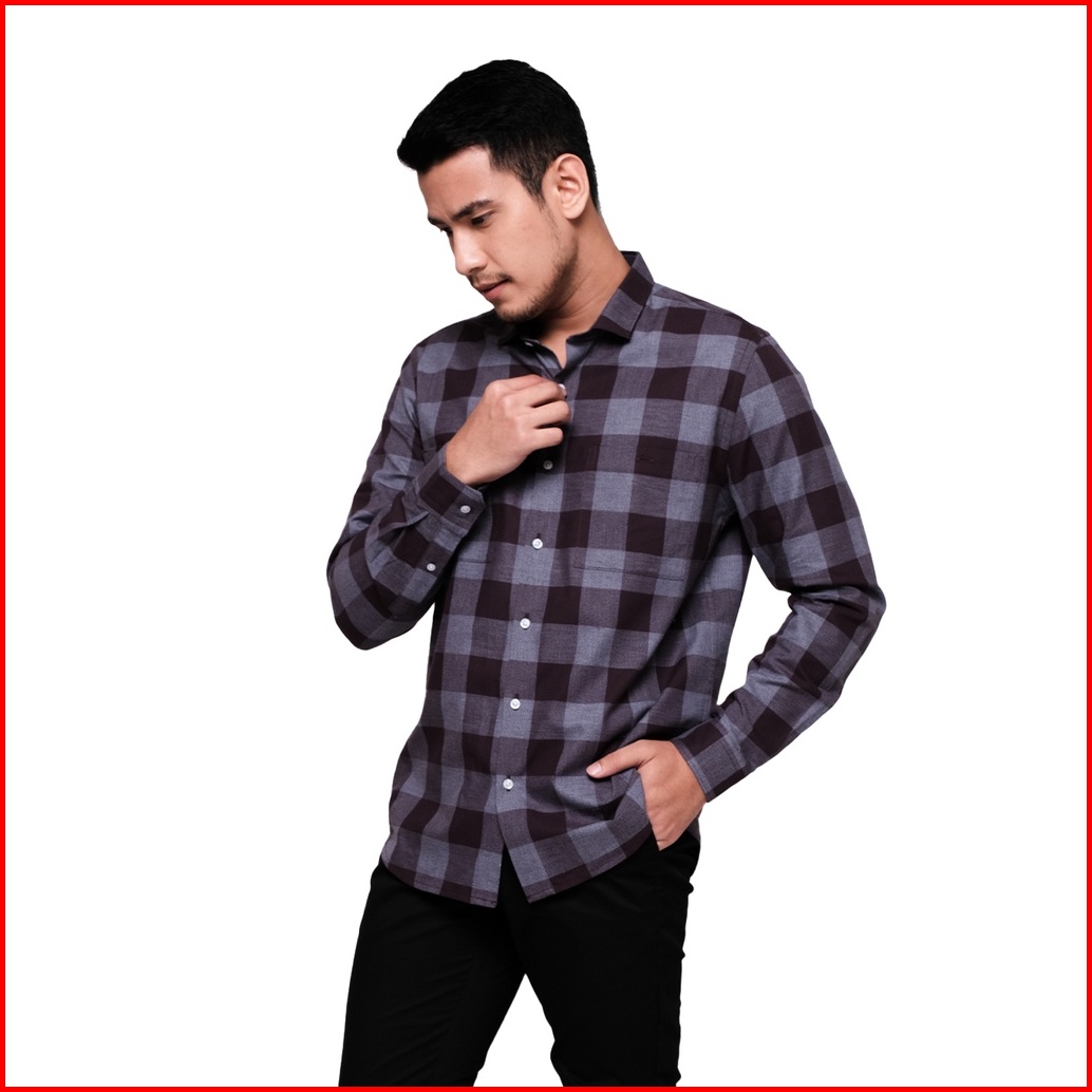 Moc Kemeja Lengan Panjang Pria Kiqking - Maroon