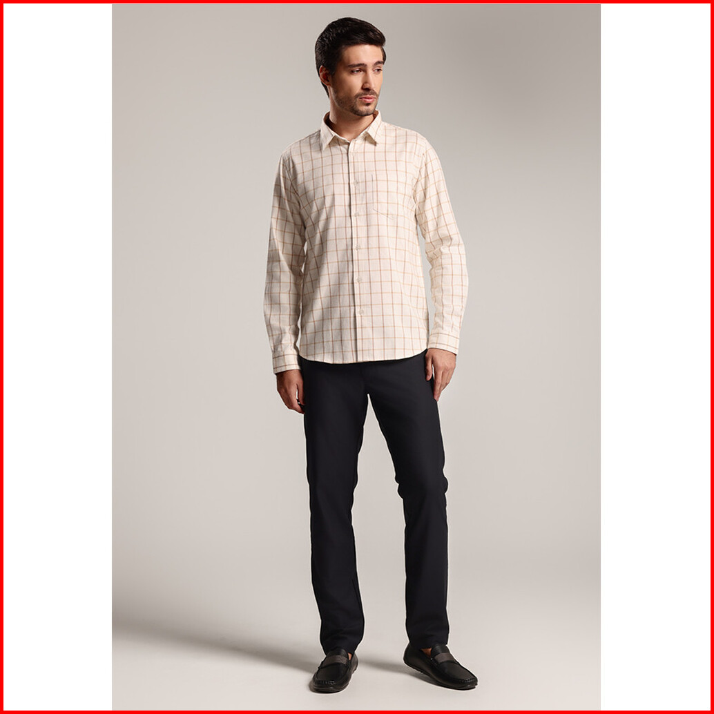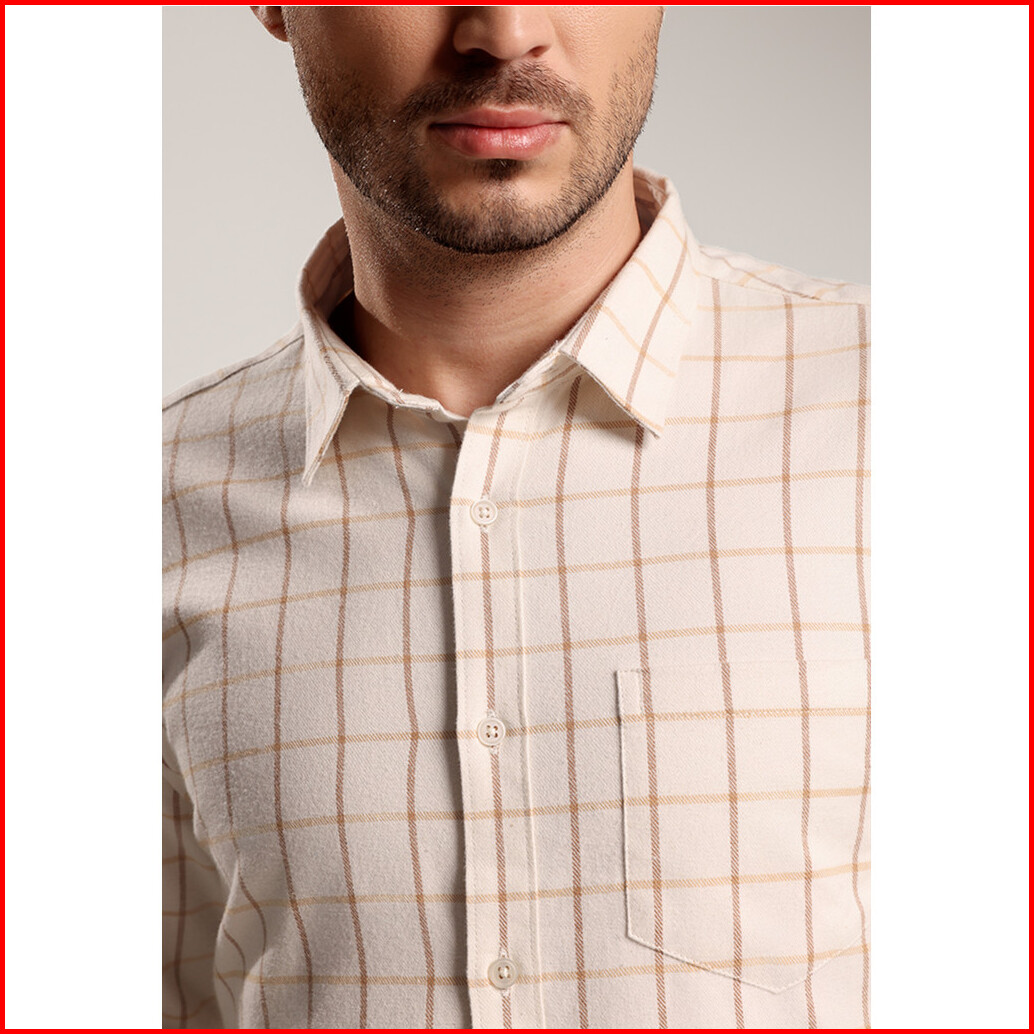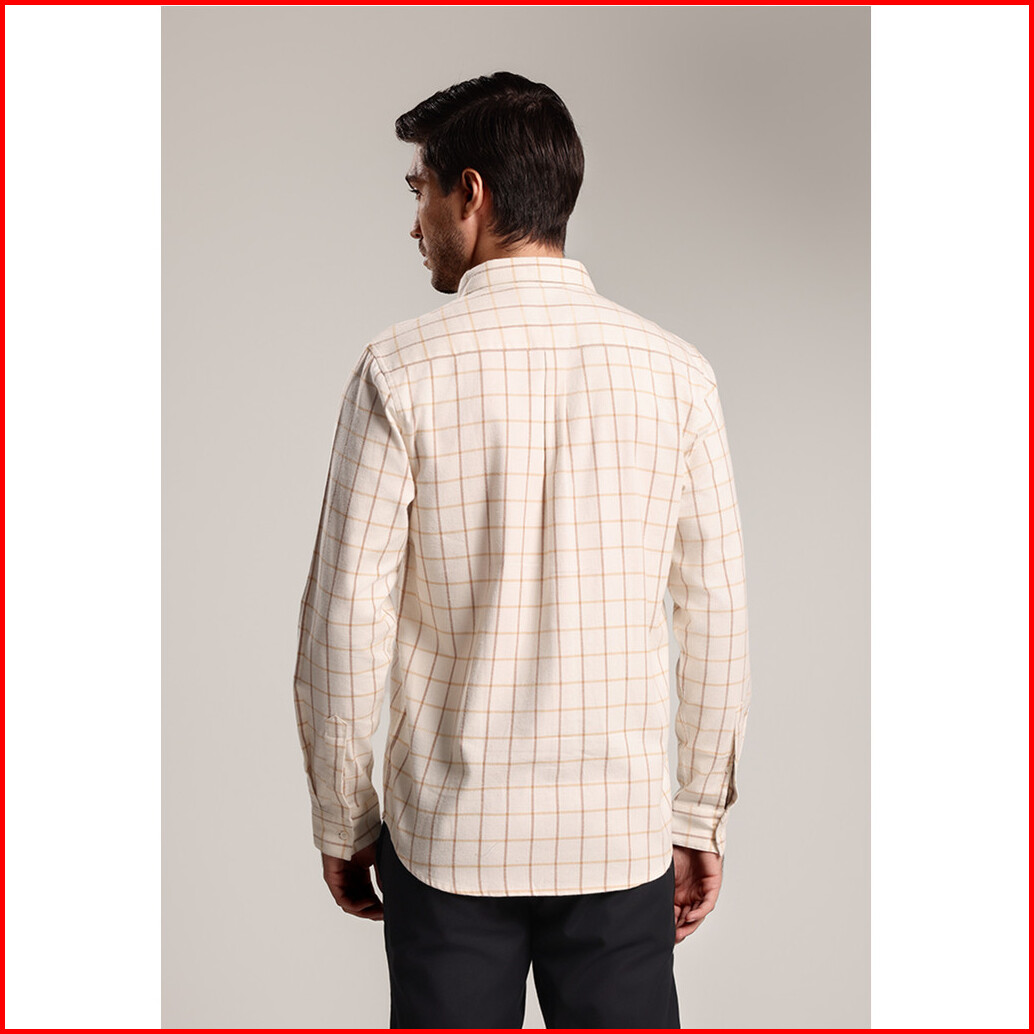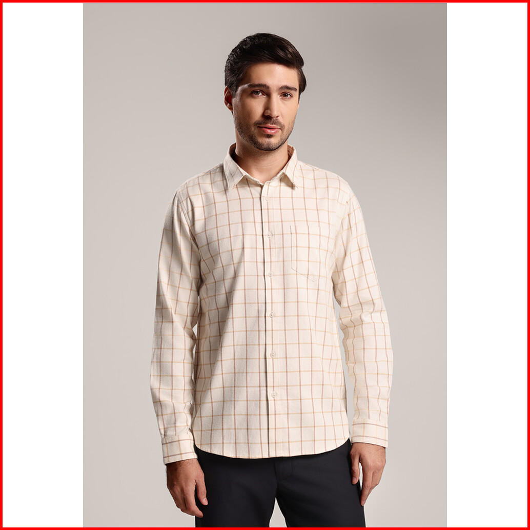 Moc - Kemeja Kotak-kotak Pria Lengan Panjang Spencer - Light Beige
