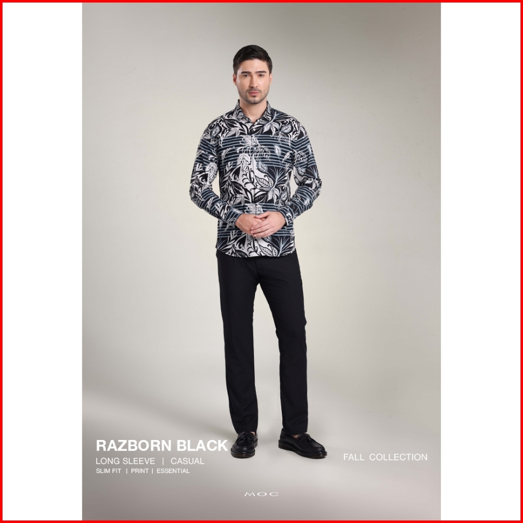 Moc Kemeja Lengan Panjang Pria Razborn - Black