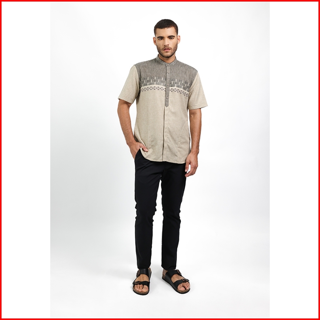 Moc Kemeja Koko Lengan Pendek Pria Bashar - Khaki