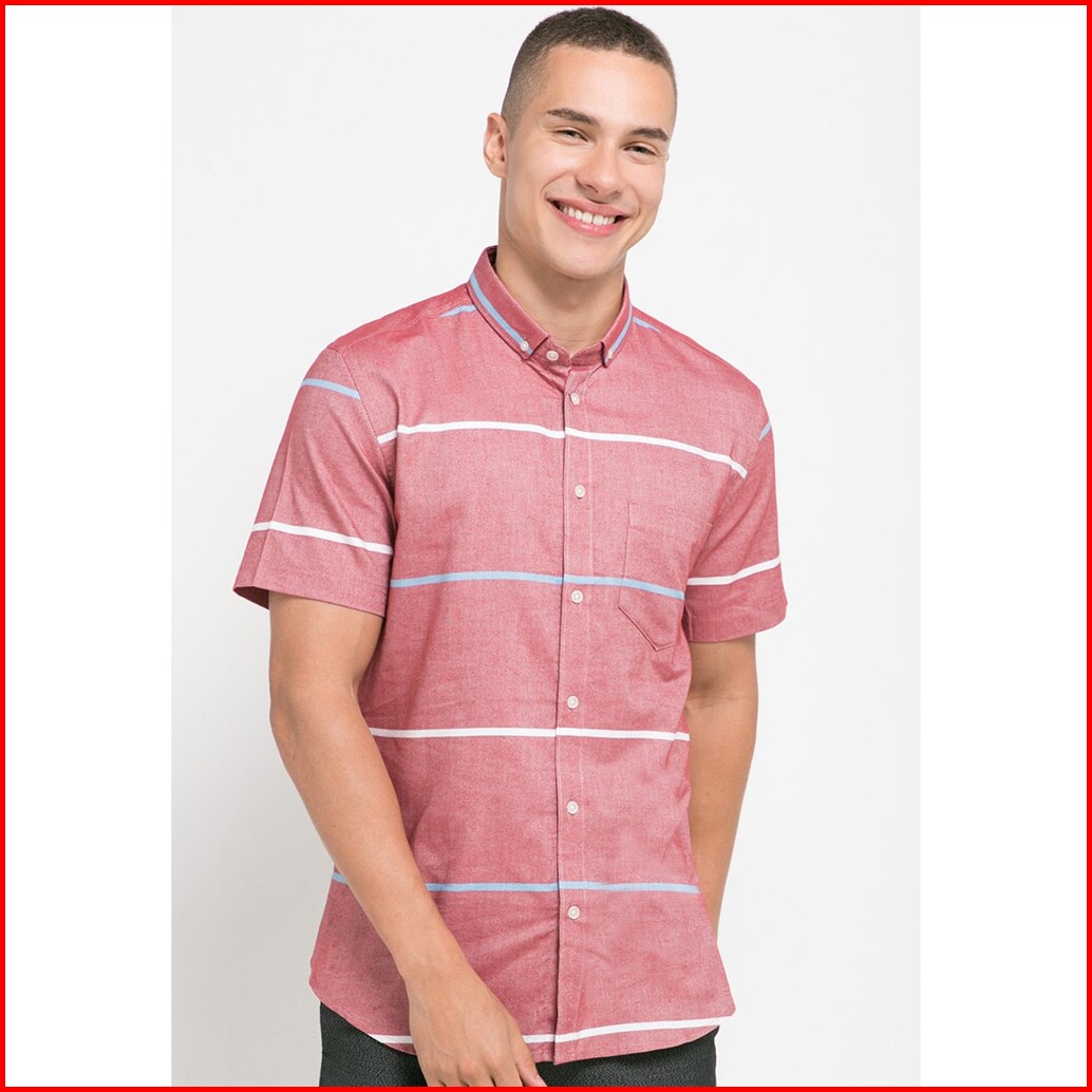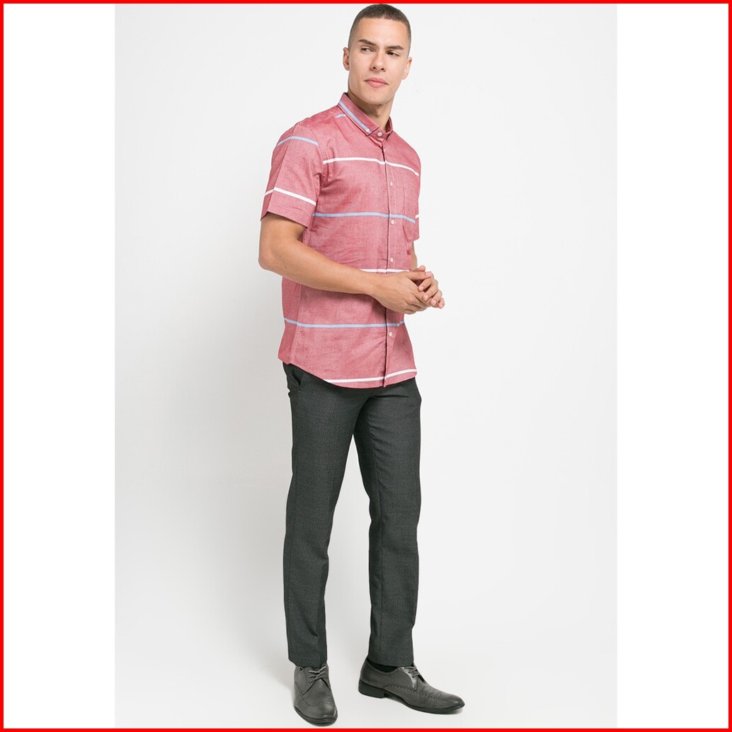 Moc Kemeja Lengan Pendek Pria Slim Fit Jeffz 1 Bestbuy-red