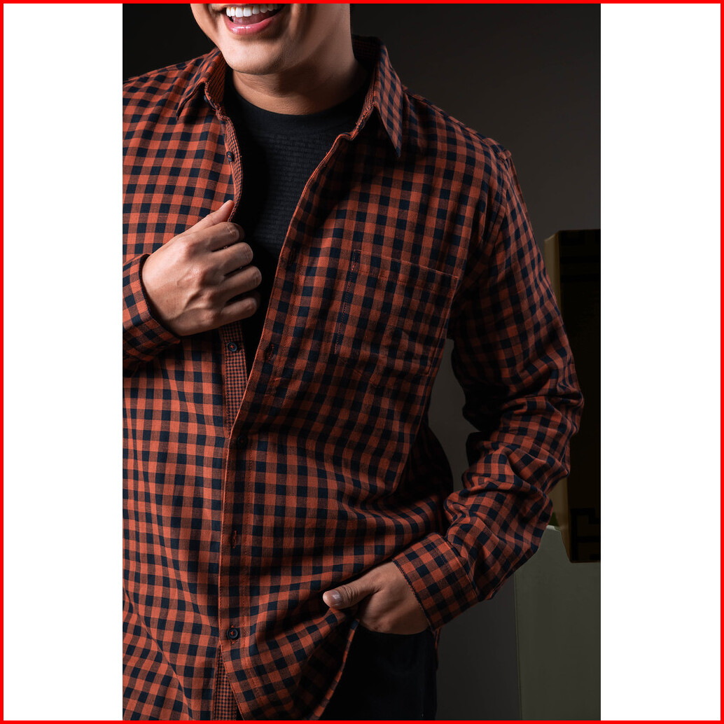Moc X Tities Sapoetra - Kemeja Kotak-kotak Lengan Panjang Confer - Brown