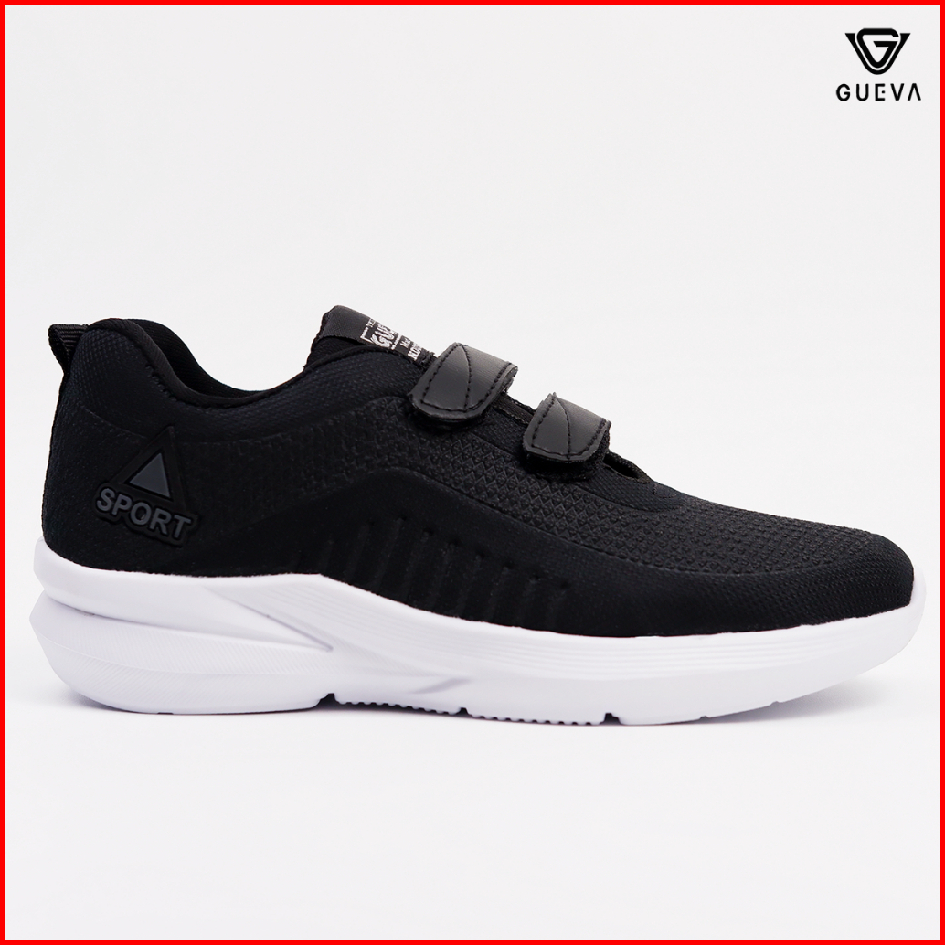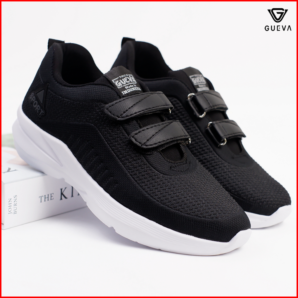 Gueva Sepatu Sekolah Hitam Sepatu Sneakers Anak Velcro Strap 2 Ringan Size 33-37