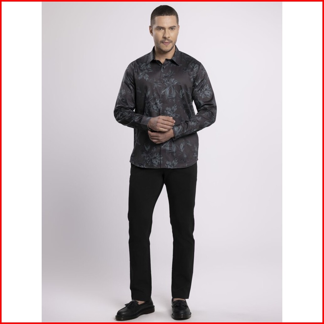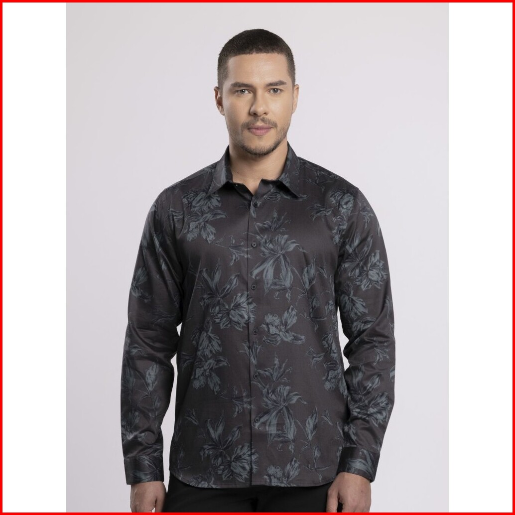 Moc Kemeja Motif Lengan Panjang Pria Verze - Olive