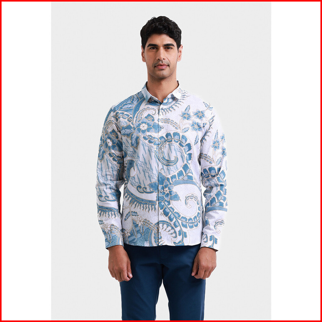 Moc Kemeja Batik Lengan Panjang Pria Tjokorda - White