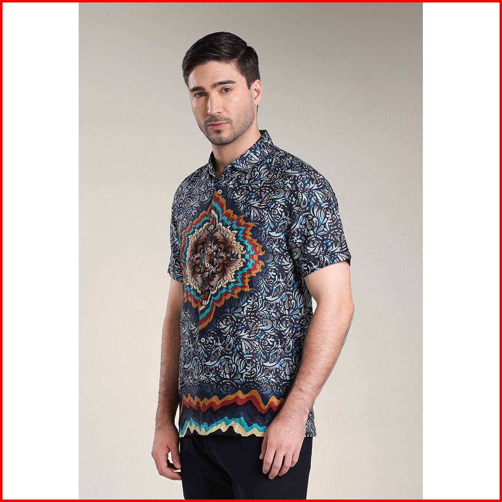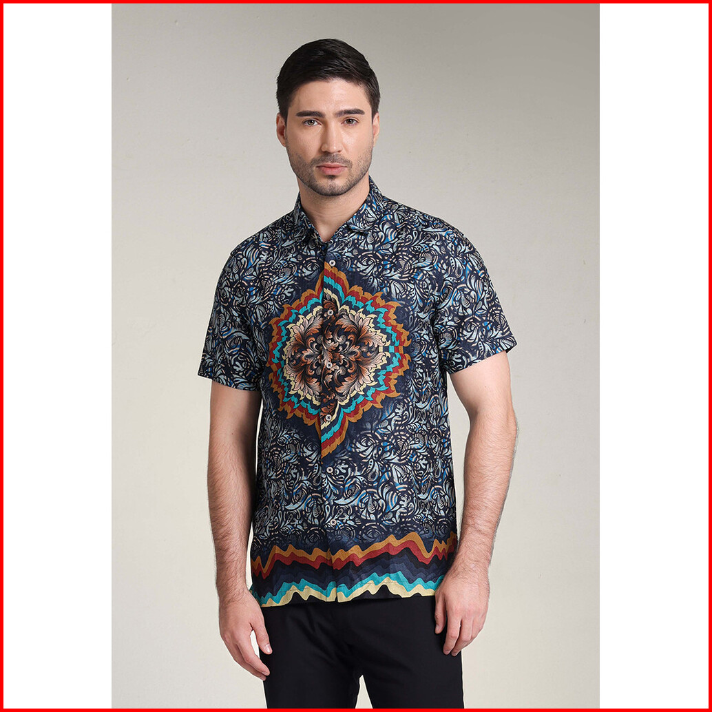 Moc - Kemeja Motif Lengan Pendek Pria Timmy - Navy