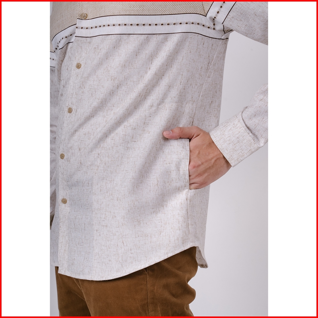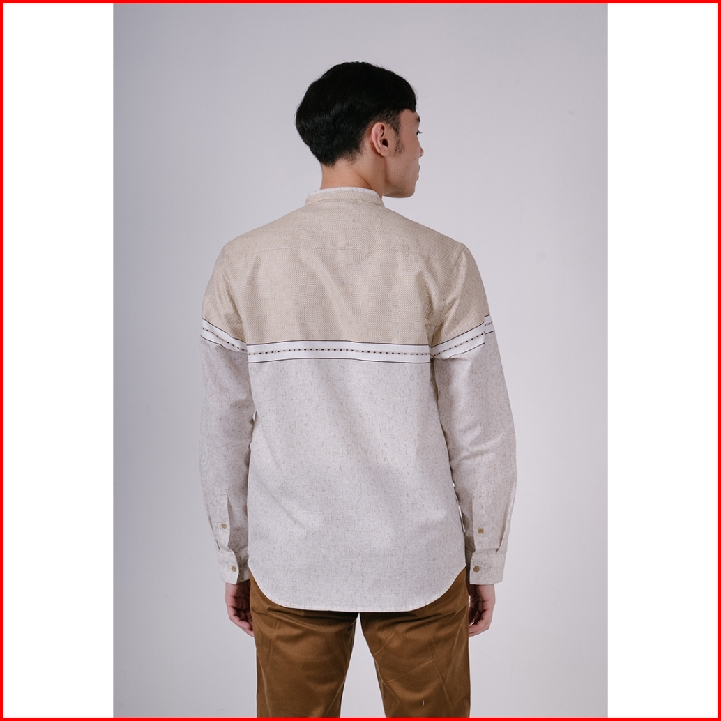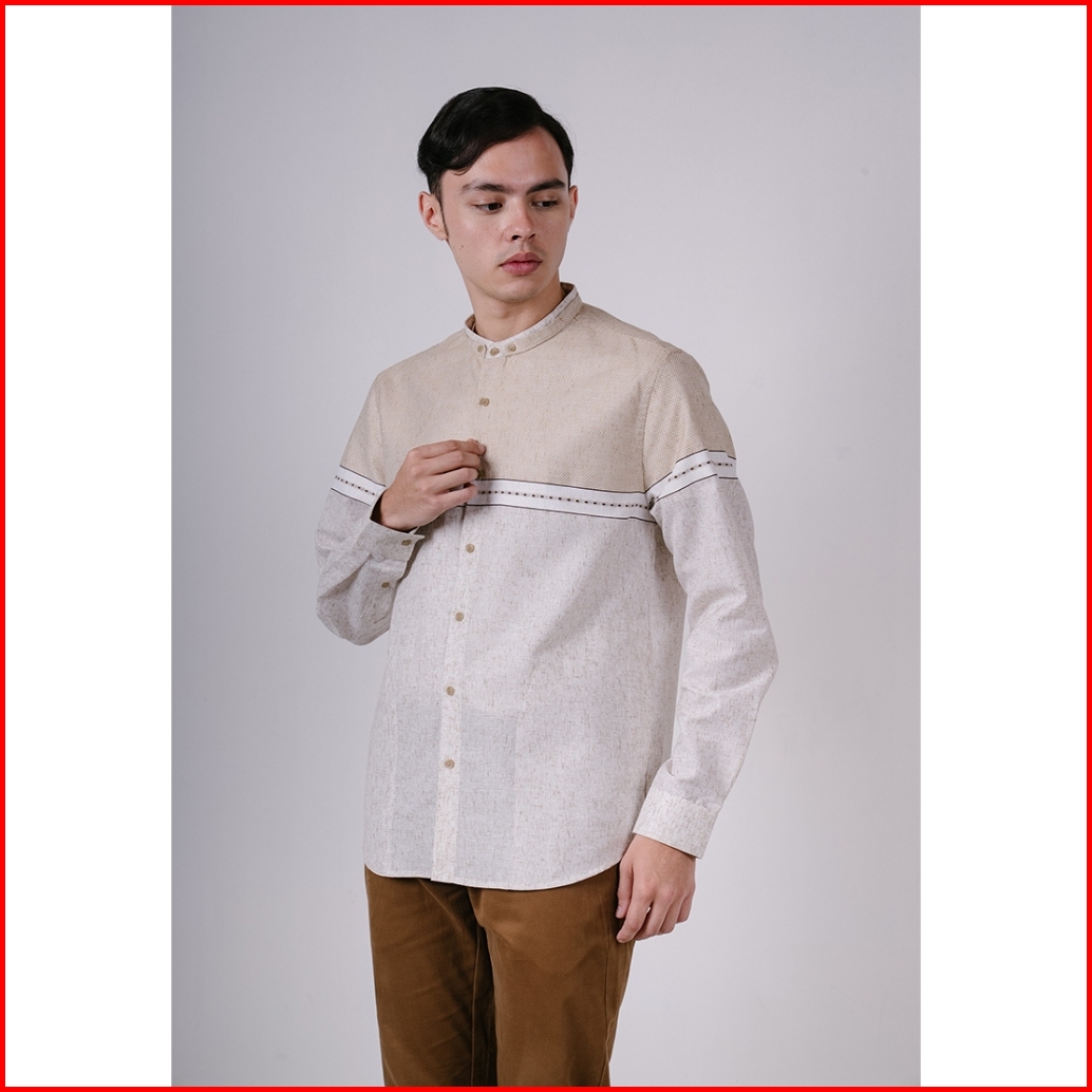 Men S Top By Moc Kemeja Koko Lengan Panjang Pria Malik - Khaki