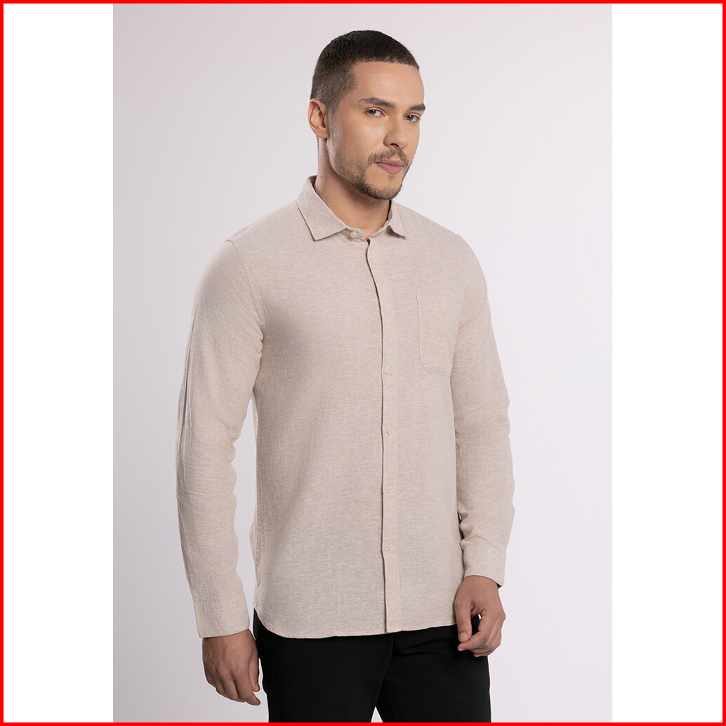 Moc - Kemeja Polos Pria Lengan Panjang Ford - Beige