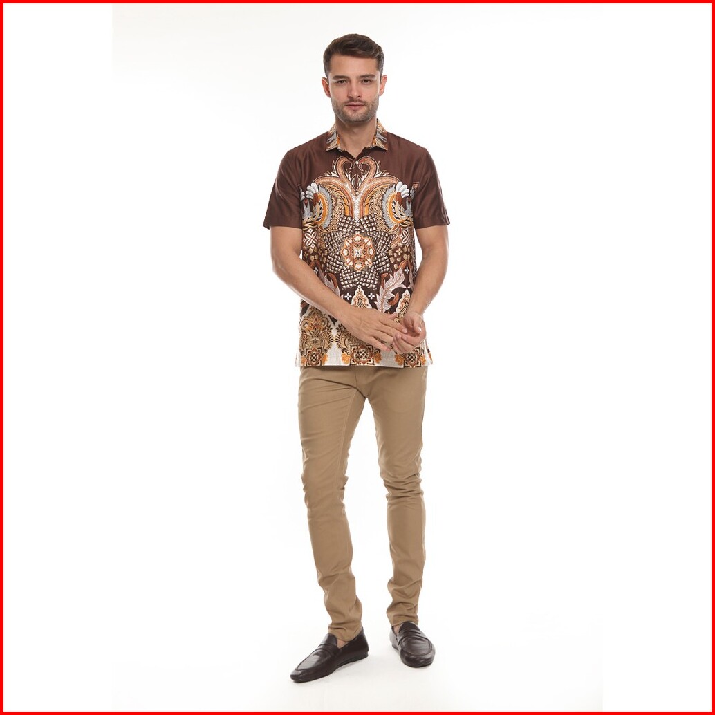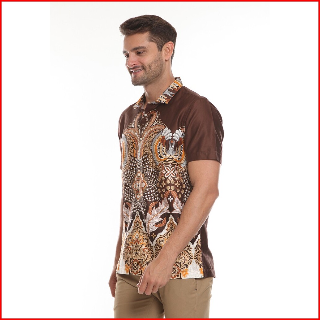 Moc Kemeja Batik Lengan Pendek Pria Modern Fit Sharpaka-brown