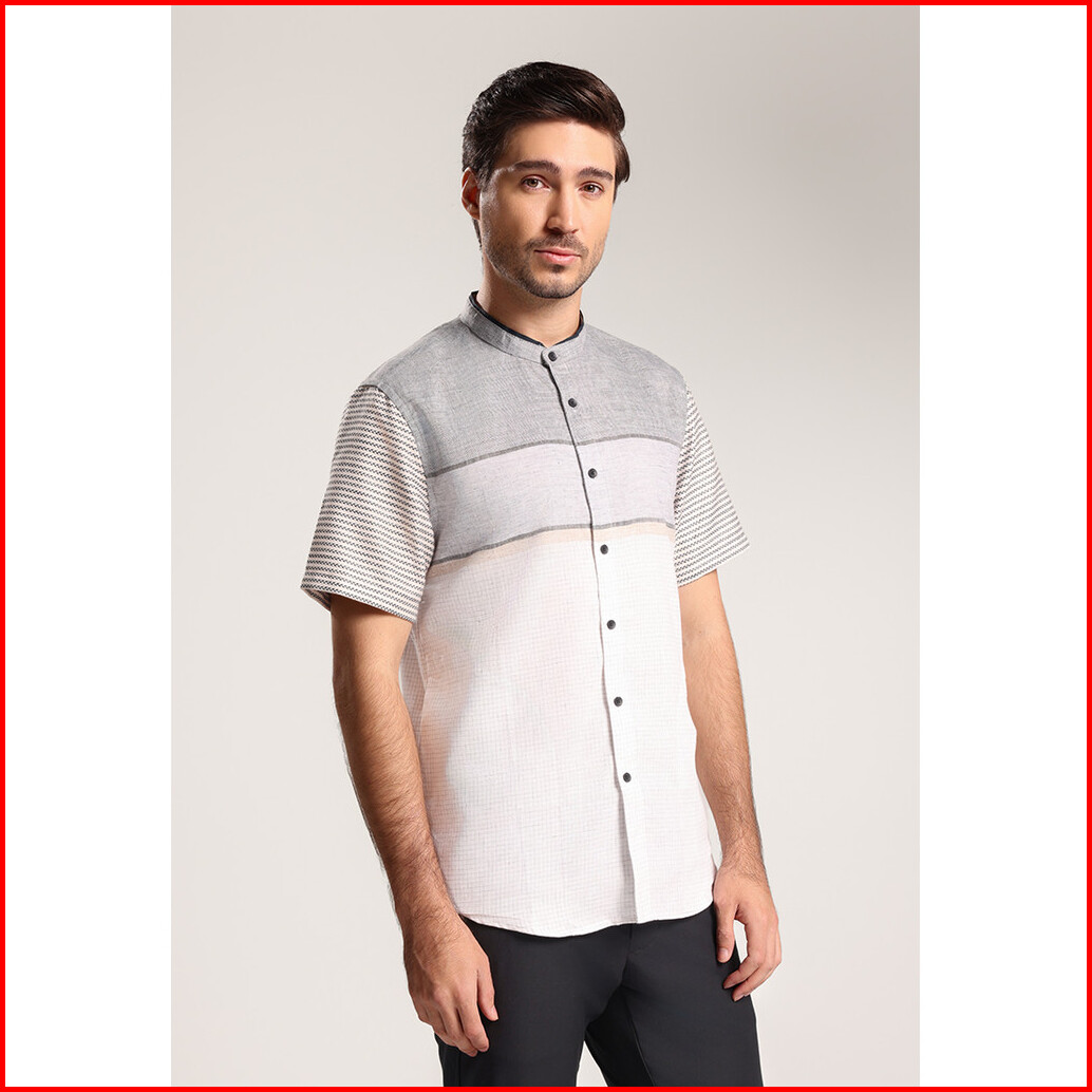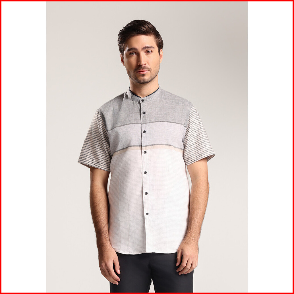 Men S Top By Moc Kemeja Koko Lengan Pendek Pria Furkan - White
