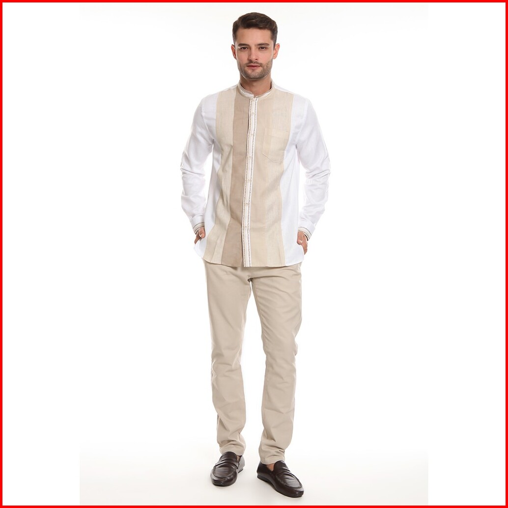 Moc Kemeja Koko Lengan Panjang Pria Leaves-khaki