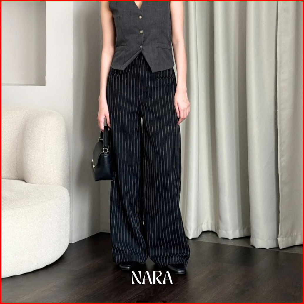 Nara - Celana Kulot Wanita Panjang Garis Garis Celana Kerja Kantor Formal Wanita Stripe Loose Pants