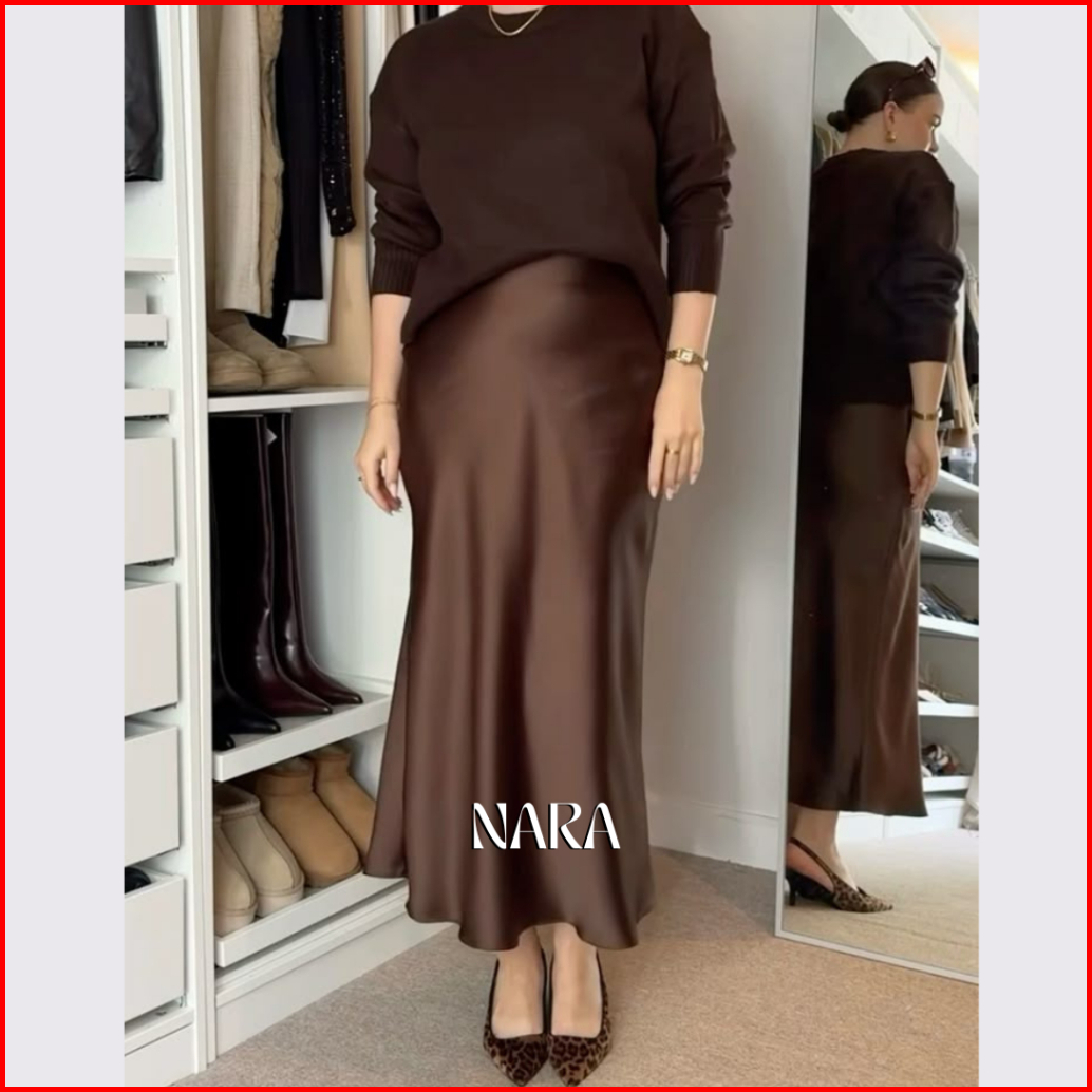 Nara - Rok Satin Silk Bawahan Wanita Panjang Midi To Maxi Korean Satin Skirt Premium