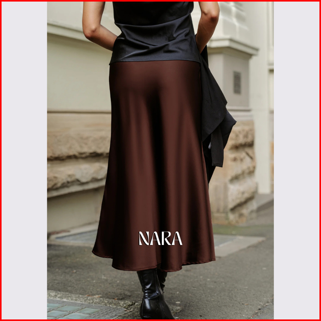 Nara - Rok Satin Wanita Premium Panjang Korean Satin Skirt Silk Midi To Maxi Bawahan Wanita