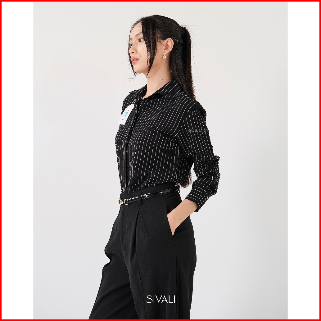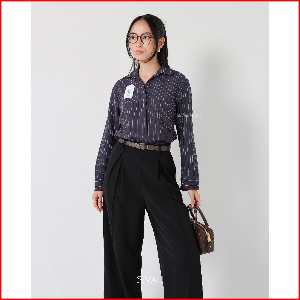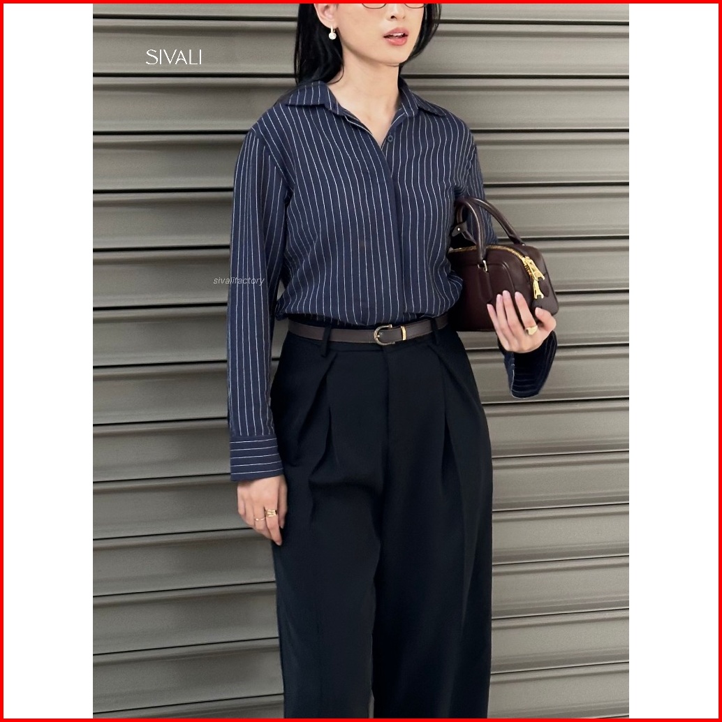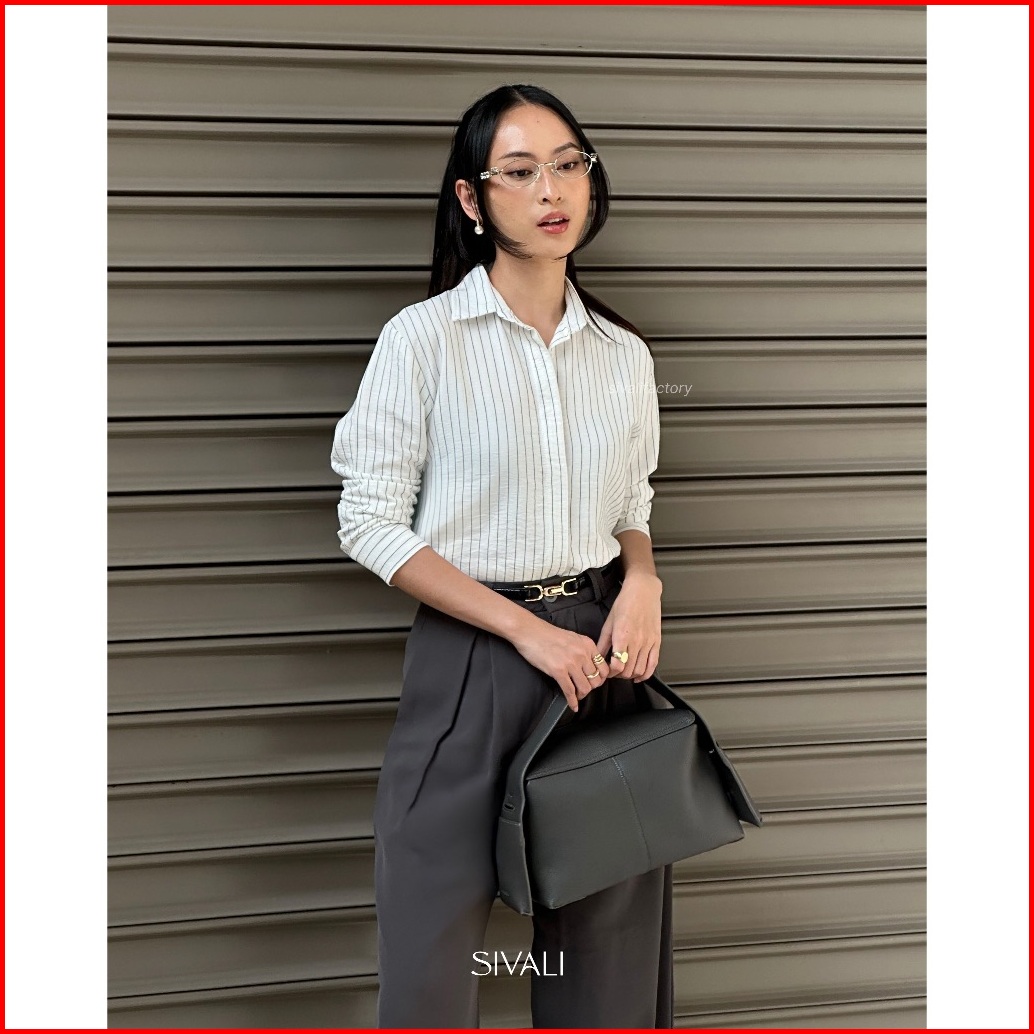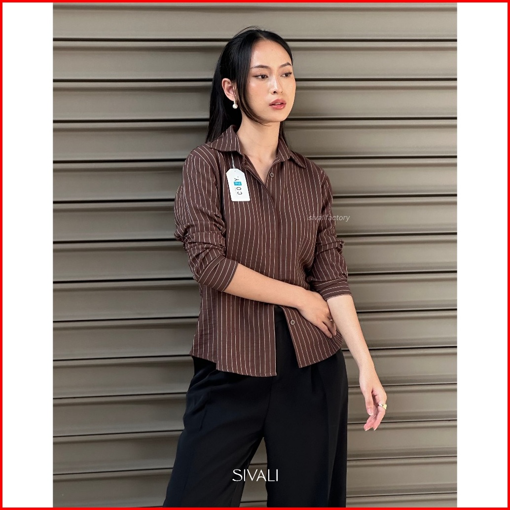 Sivali Maison Stripes Shirt - Kemeja Wanita Stripe Lengan Panjang Casual Kerja - Atasan Wanita - 1974